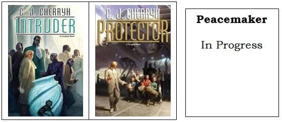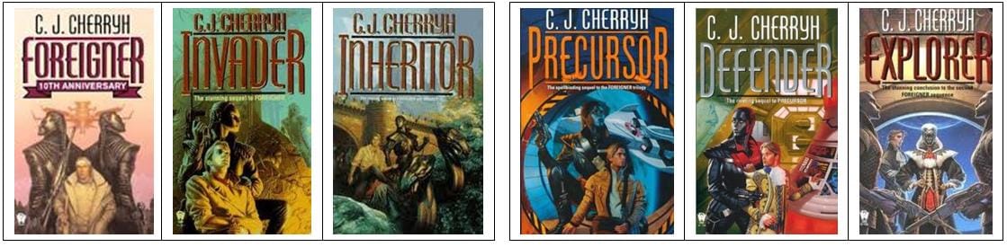 The Foreigner Universe, a separate series, is another excellent world building exercise. It comprises five sets of trilogies: Foreigner, Invader, Inheritor; Precursor, Defender, Explorer; Destroyer, Pretender, Deliverer; Conspirator, Deceiver, Betrayer; Intruder, Protector (just published), and Peacemaker (currently in progress).