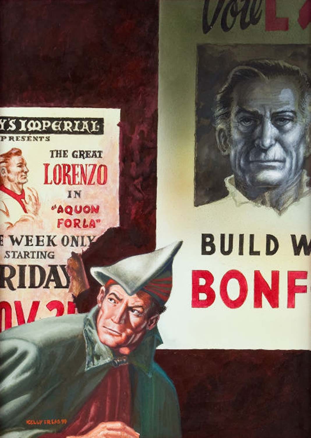 Re-creations do not sell for the same price as originals, and those who buy them must understand how the market reacts to such artwork. Original “Shadow” pulp art by Jerome Rozen sells for approx. $20,000-$30,000. “Re-creations” by his brother George can sell for one-tenth of that, as did “Cards of Death” ($2062). Same for Freas: his re-creation sold for about $1920. – while in comparison, even his own, and generally lesser valued pen/ink interiors from the same digest sold for $1100-$1400.
