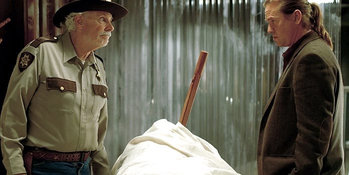 The town sheriff, Bobby LaGrange (played by character actor Bruce Dern, whom you might remember from The ‘Burbs with Tom Hanks) turns out to be a big fan of his work, and fancies himself an author of short horror fictions himself. Turns out he has a story, and wants to collaborate. He’s got a doozy of a stiff in the morgue, and is willing to share.