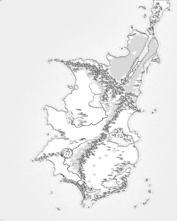 The second map Rob Antonishen designed for me was, obviously, based on the first. With the first map of Reshka, after the initial mark up, Rob worked from the coastlines in. The 1.5 and 2.0 maps took the existing coastlines and changed them … drastically. I compared the exercise to playing SimCity; first you create and then you take an almost gleeful joy in the destruction before rebuilding from the ashes.
