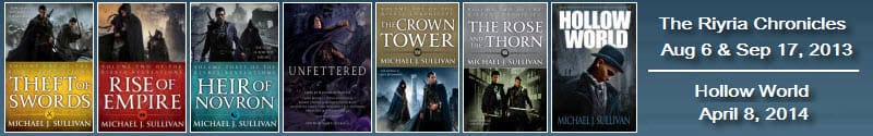 Michael J. Sullivan is a speculative fiction writer who has written twenty-five novels and released nine. Eight of his fantasy books (The Riyria Revelations, and The Riyria Chronicles), were published by Hachette Book Group’s Orbit imprint. Hollow World, a science-fiction thriller was released by Tachyon Publications. The first four books of his new series, The First Empire, has sold to Random House’s Del Rey imprint, and the first book is scheduled to be released in the summer of 2016. He can be found on twitter, through his blog www.riyria.com, and on his facebook page and his publisher’s page for the series.
