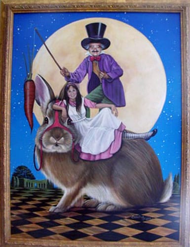 Yes, celebrity portraits can end up costing small fortunes, and if you are wanting something in the way of traditional fine portraiture, and consult a major resource such as Portraits, Inc. you can have your pick of 150 artists, at prices averaging $10,000 to $30,000. But if you—want something a bit more fanciful and imaginative than a depiction of yourself in business attire wearing a “slight smile”—then you really should consider hiring a professional SF/F artist who makes their living bringing fantasy themes to life. They will frequently charge a third to a half of what traditional portrait artists will charge, and will not only be able to execute your non-traditional requests, but be comfortable hearing “I want to be shown with my kids flying on a magic carpet,” or “in mortal combat with a white gorilla.” I have arranged for several paintings of this kind—from guys who want to be riding dragons, to families sharing ‘high tea’ with elves. Husbands have commissioned unusual fantasy scenes featuring their wives (!) and vice-versa. Unusual costumes, hair styles, and of course, environment . . . are typical. Remember, you are hiring an artist who is used to coming up with the unconventional, the unexpected, even the bizarre. This is a private commission where almost anything (given the consent of the artist, of course) is possible. What is important—I repeat—is picking the right one for the job.