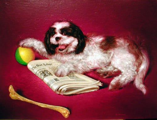 I’m talking about CLOSENESS: the kind that prompts 40% of us to carry pictures of our pets in our wallets and on our cell phones; the kind that drives us to tears when a pet dies (and the consolation of friends and family that recognizes the loss); the kind that prompts stores and bars to allow dogs into their establishments, and businesses to welcome dogs into the workplace; the kind that motivates us to dress them up, take videos of them playing the piano or dancing, and enter them in beauty contests. Is it any wonder that we want to have their portraits hanging on our walls?