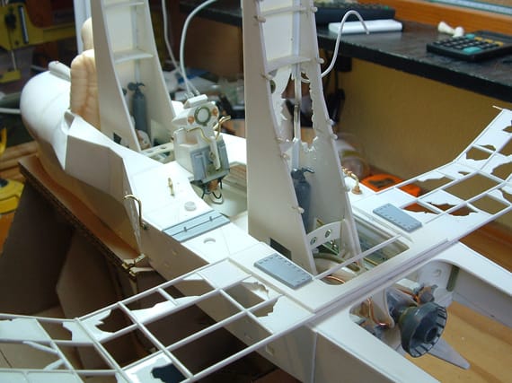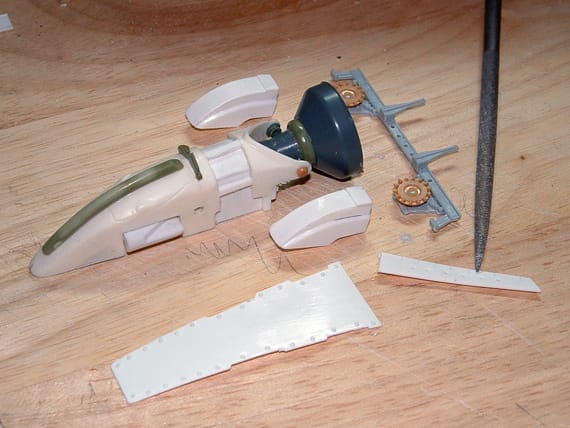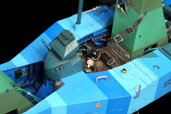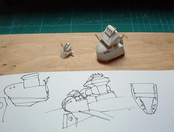 A wide variety of techniques and materials were used – bits and pieces from plastic model kits, FIMO modelling clay, wire, molding resins. Grant even made a vacuum former to create some of the plastic pieces.