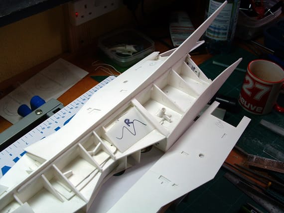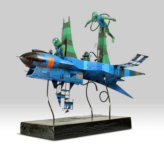 Having obtained enthusiastic permission, Grant began the process of learning how to do what he wanted to do: bring those spaceships to life. He began with paper models and frequently shared his results and ideas with Colin Hay, who offered assistance, particularly in areas of the sculpture that were not visible in the original drawing.
