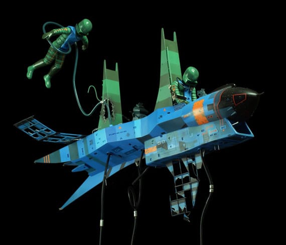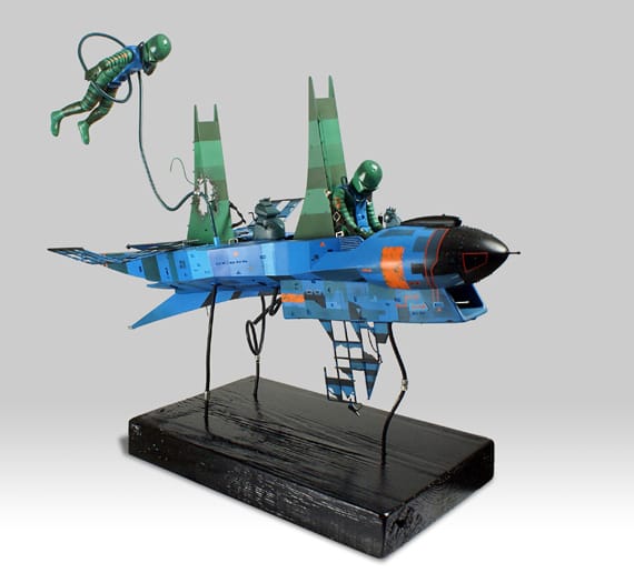 Grant began using photoshop to cut his favorite spaceships out of those illustrations, placing them on different backgrounds and realized that they started looking like sculptures.