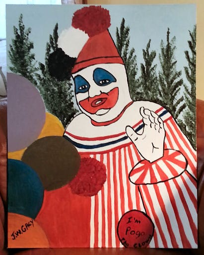 Also true: there’s an active market in Murderabilia and no one there is cautioning potential buyers that we must separate the Art from the Artist. NO. Quite the opposite. That, in fact, IS THE ATTRACTION! The “badder” the man/ woman, the more valuable anything associated with them. At the same time, and precisely because the art would likely never “endure” without the notoriety of the creator, the idea of preserving anything created by John Wayne Gacy was unthinkable to businessman Joe Roth, who spent $7,300 to purchase 25 paintings and drawings by Gacy at auction in 1994, days after the mass murderer’s execution. A month later he hosted a bonfire to destroy the artworks, which 300 people attended, including family members of nine victims. He was quoted as saying “I think being here today and being able to toss that stuff on the fire finally gave them some satisfaction.”