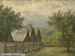 - Guess who? “Rural Houses and Trees” oil. Sold for c. $20,000 via Mullock’s Auctioneers, 2009. One of 15 items sold by this artist for a total of almost $120,000.