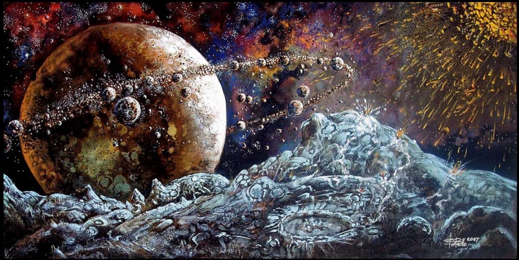BB: Three giants have influenced my later art life: Robert McCall (with his real space exploration artwork made for NASA), John Berkey (with his epic sci-fi paintings), and John Harris (with his incredible SF book covers). Other than that, my all-time favorites are Michelangelo, Rembrandt, Vermeer, Van Gough and Modigliani. My favorite art style: Impressionism. It influences me until today, unstoppably.