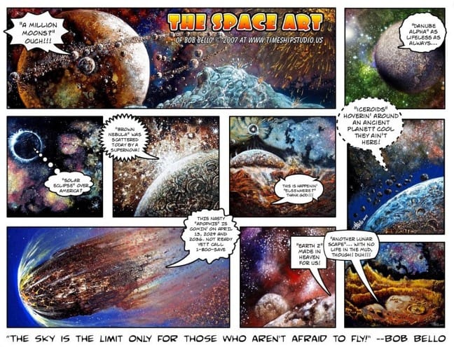 BB: Now that I’m retired, I hope I could have all the time in the universe to pursue my childhood dream of creating my own comic book. I’m currently converting some of my screenplays and radio drama scripts into comic books, after I published them as a novelized anthology of short stories. I also love to paint “space art” just for fun, not so much for getting paid. The two often don’t go hand-in-hand, as we all know. Clients might ask you to draw or produce something that wasn’t in your heart so much or isn’t your brainchild at all. So, now I do both, paint the beauty of the cosmos in oils and acrylics and illustrate my old-time scripts from the 1980s, hoping to publish my first graphic novel. I’m 52, but the child in me never died in that hospital, never mind that they almost lost me a few times.
