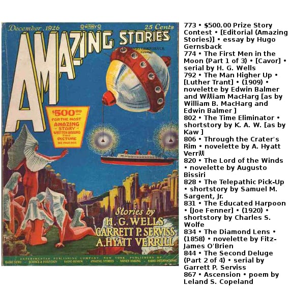 We’re going to start rectifying that right now with a new (occasional) feature that combines the information that can be found on several web resources, notably Philip Stephenson-Payne’s Galactic Central website – where one can peruse complete collections of pulp magazine covers for days – and the Internet Speculative Fiction DataBase (ISFDB), wherein one can ascertain the contents of many (most) of those self-same pulp magazines.