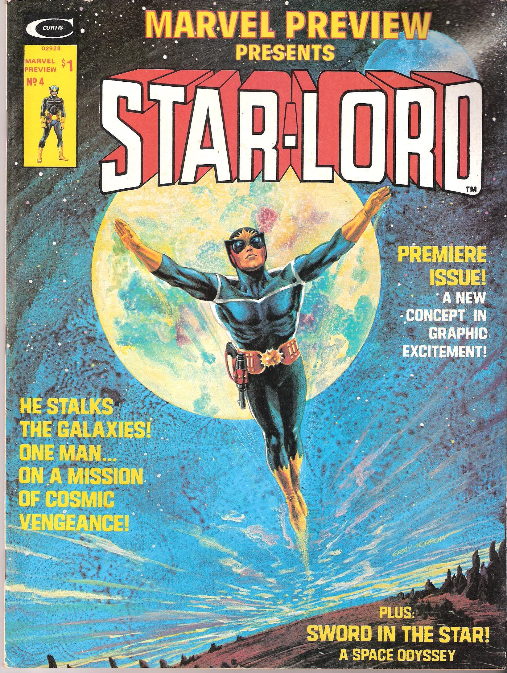 Star-Lord, the human adventurer played by Chris Pratt in the “Guardians” movie, first appeared in Marvel Preview #4, a black-and-white comic published in 1976. Some of the facets of this character have made it through to the present, but not all. Human Peter Quill is made into the legendary Star-Lord by an extraterrestrial entity known as the Master of the Sun. The primary power Quill receives is the element gun, which shoots seemingly endless amounts of earth, air, fire or water. As I understand it, Quill is still carrying the element gun in the movie.