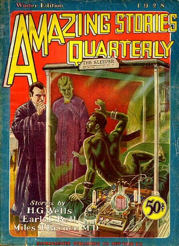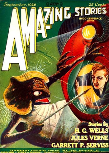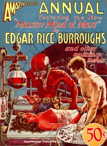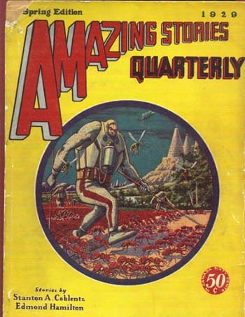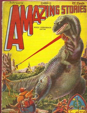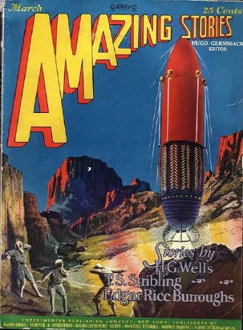 Next: FuturesPastEditions books. The Giant 35th Anniversary issue and a growing line of annual anthologies, starting with THE BEST OF 1926. Retailing for $8.99 (print) and $3.99 (ebook), one or more of these lavishly illustrated books will get you up to speed on Amazing’s early years, when it was the only magazine in the entire world publishing nothing but science fiction!