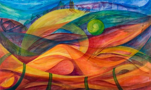 Rosana doesn’t “prepare” for creating art – either by creating prelims, sketches or roughs, or by giving the matter too much thought ahead of time. “I just show up in my studio and let it happen”. Like a writer who takes no notes, prepares no outline, draws no maps, Rosana just lets her imagination loose…and chooses the medium that seems – at that moment – to best suit the concept she is wanting to express. Sometimes it “works”, sometimes it doesn’t – and she ends up scraping paint off the canvas, or overpainting, until it feels right.