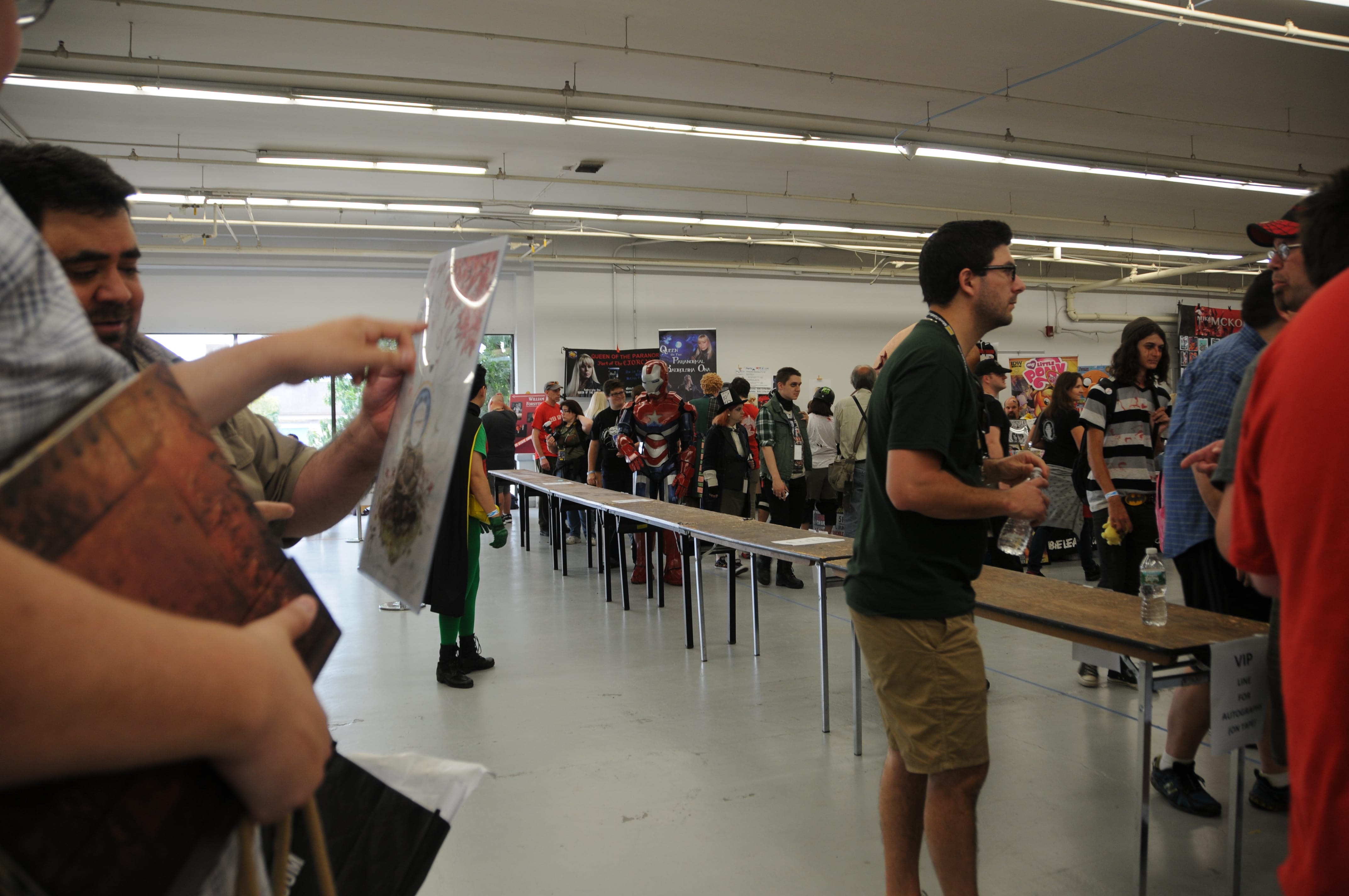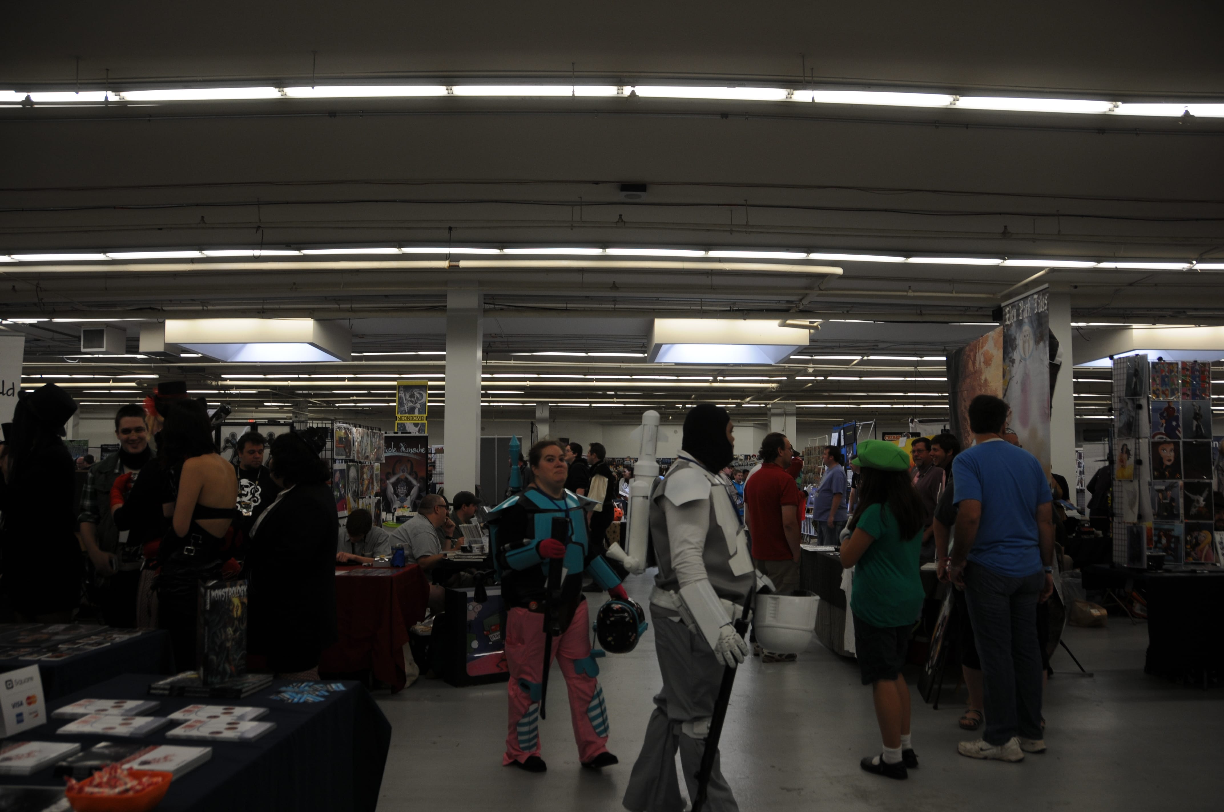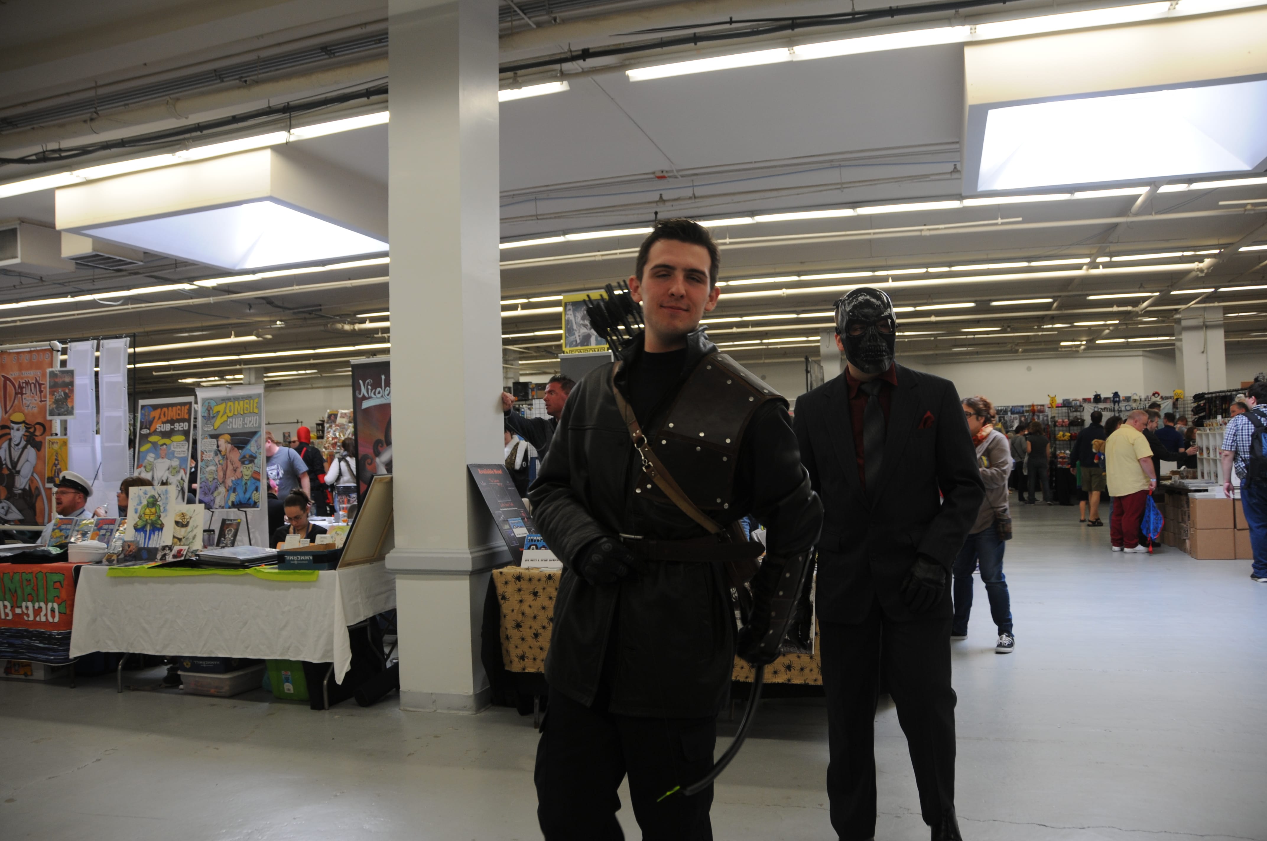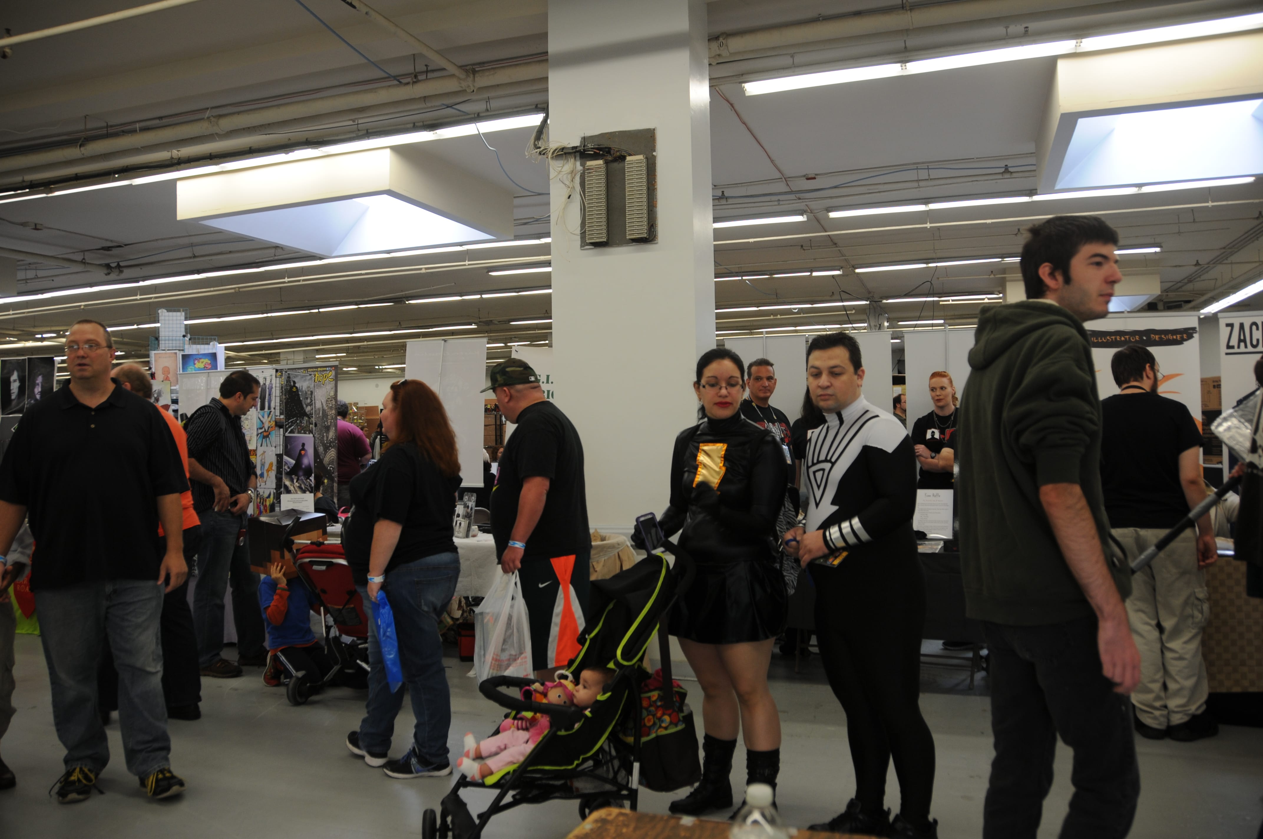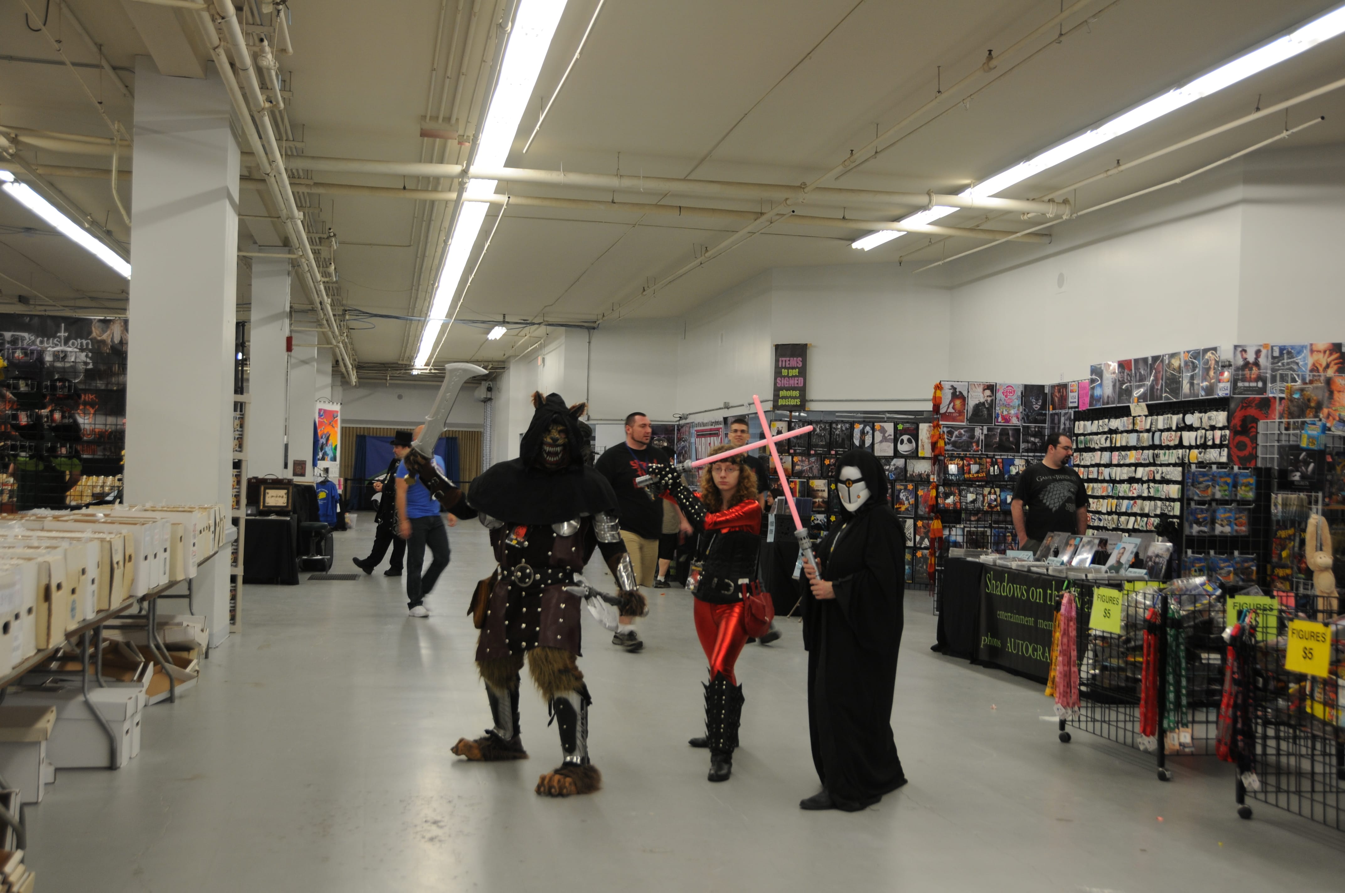 Cosplayers, zombies, Batcycles, comics, comics, comics and artists, artists, artists!…plus a hall of would-be fencers taking instruction from Miltos Yerolemou aka Syrio Forel of Game of Thrones!
