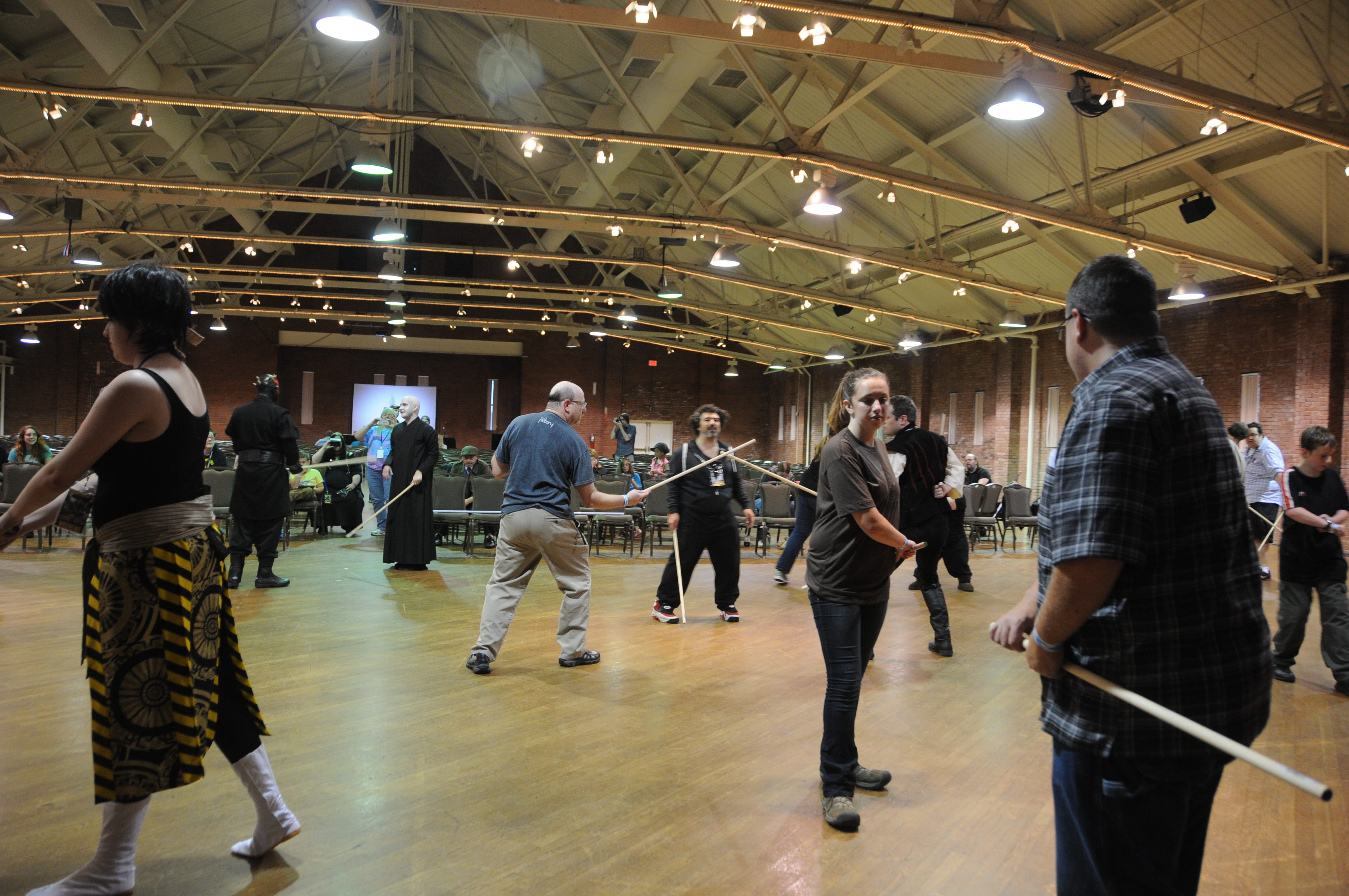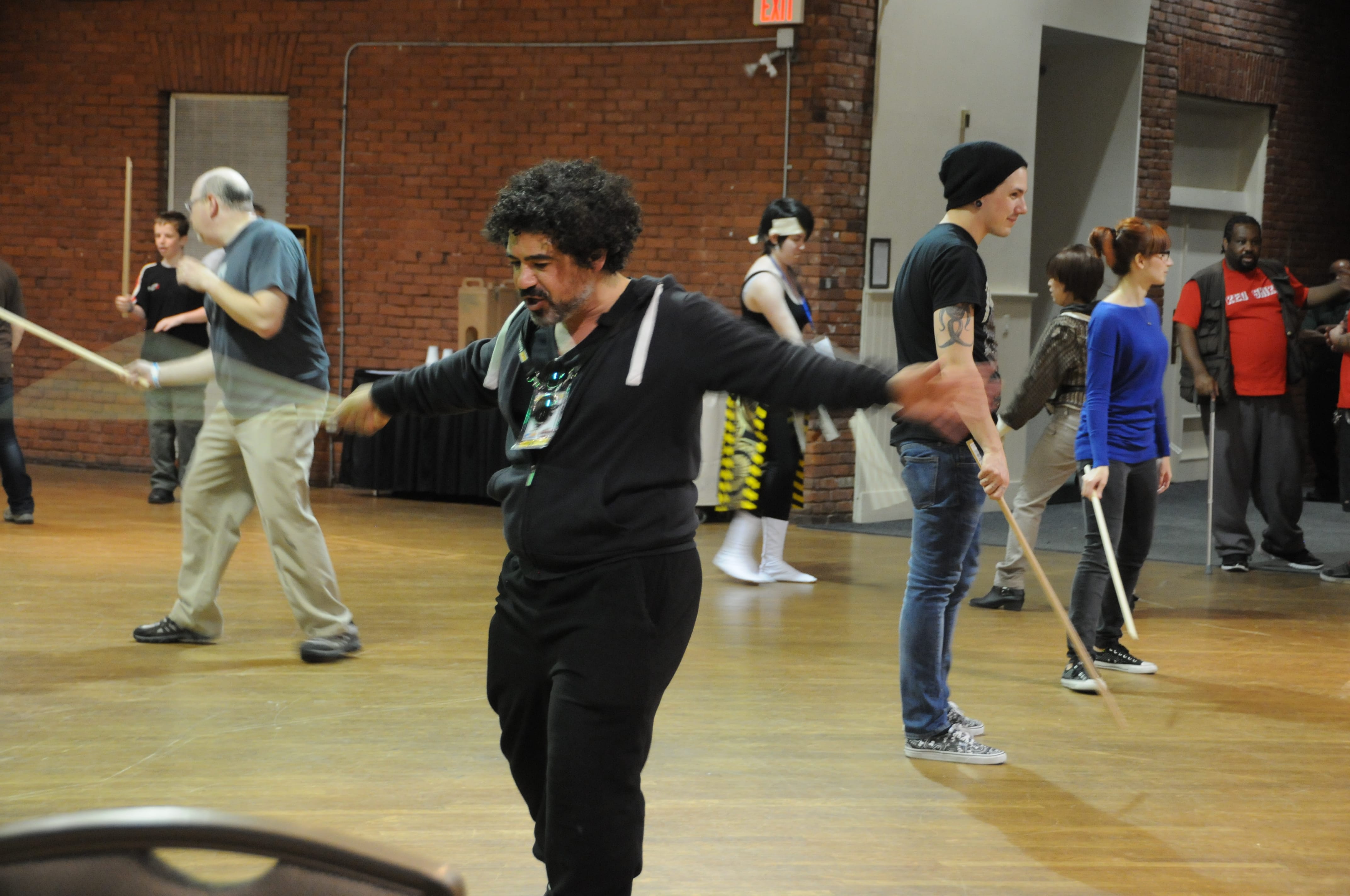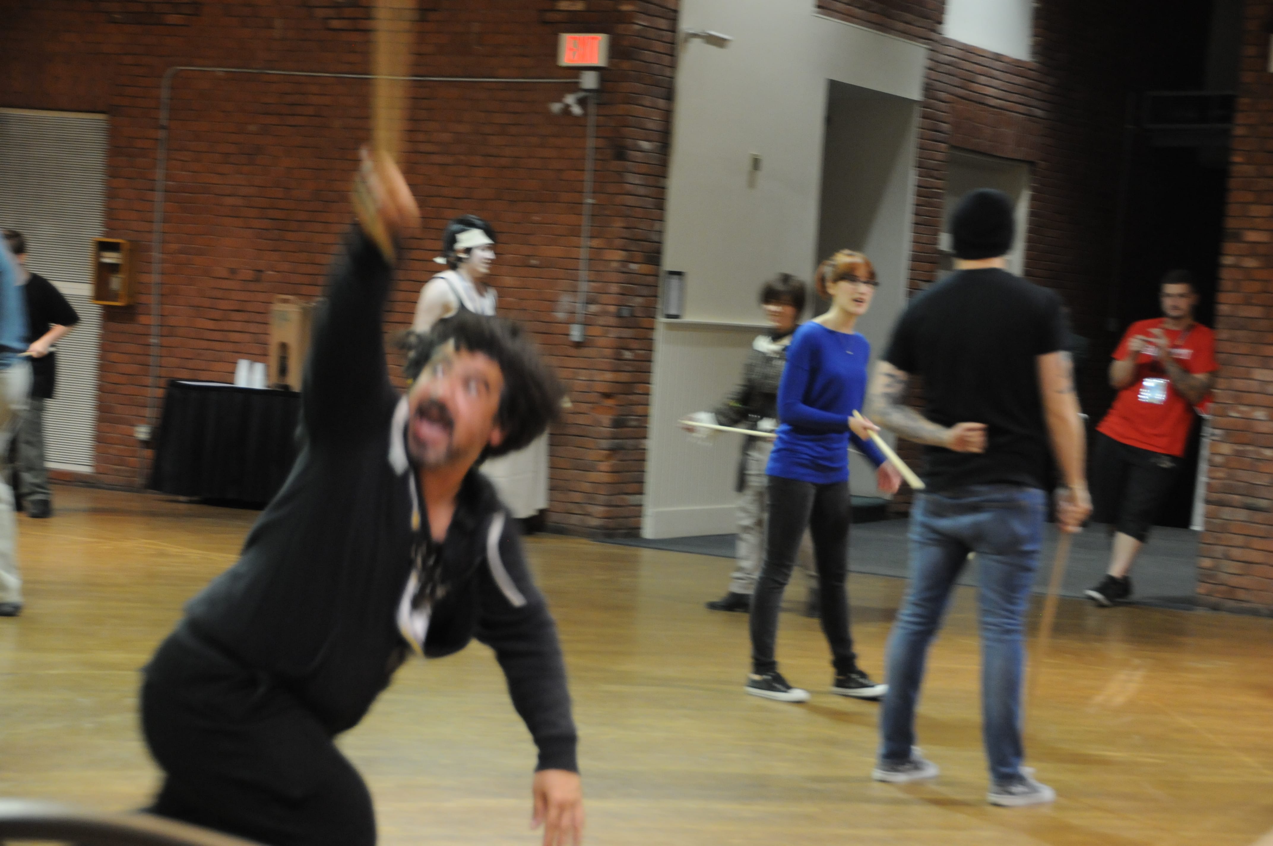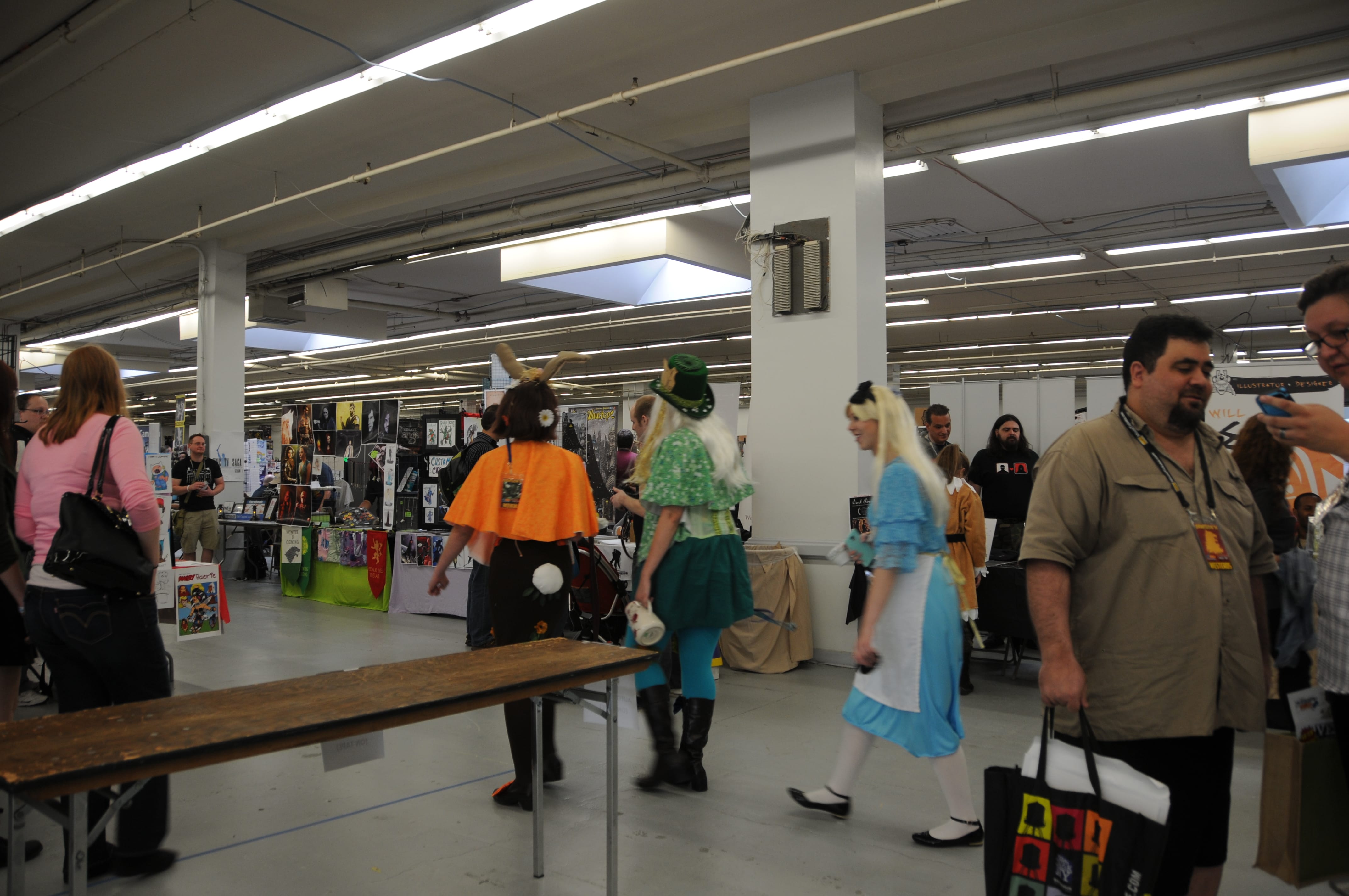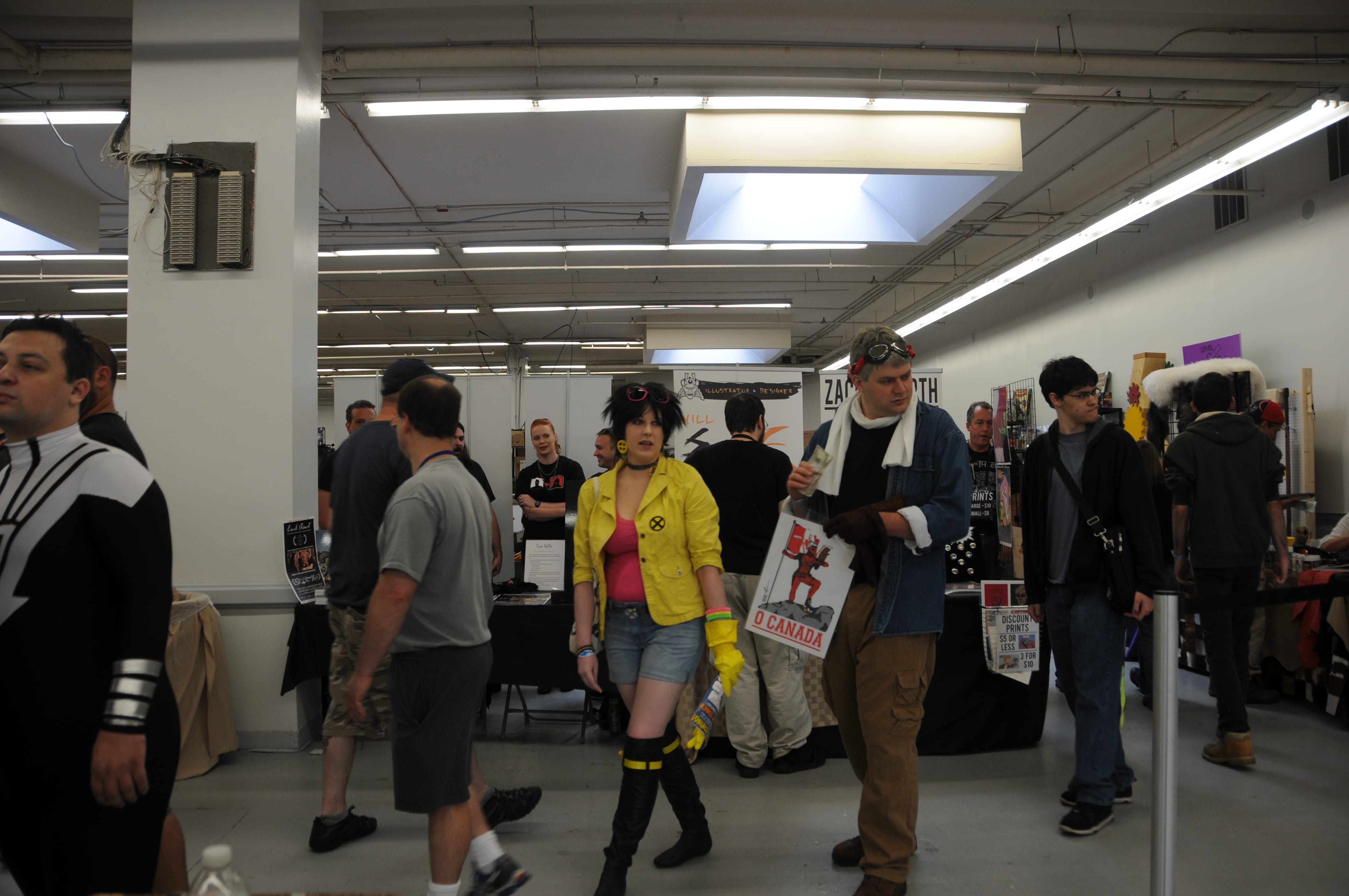 Cosplayers, zombies, Batcycles, comics, comics, comics and artists, artists, artists!…plus a hall of would-be fencers taking instruction from Miltos Yerolemou aka Syrio Forel of Game of Thrones!
