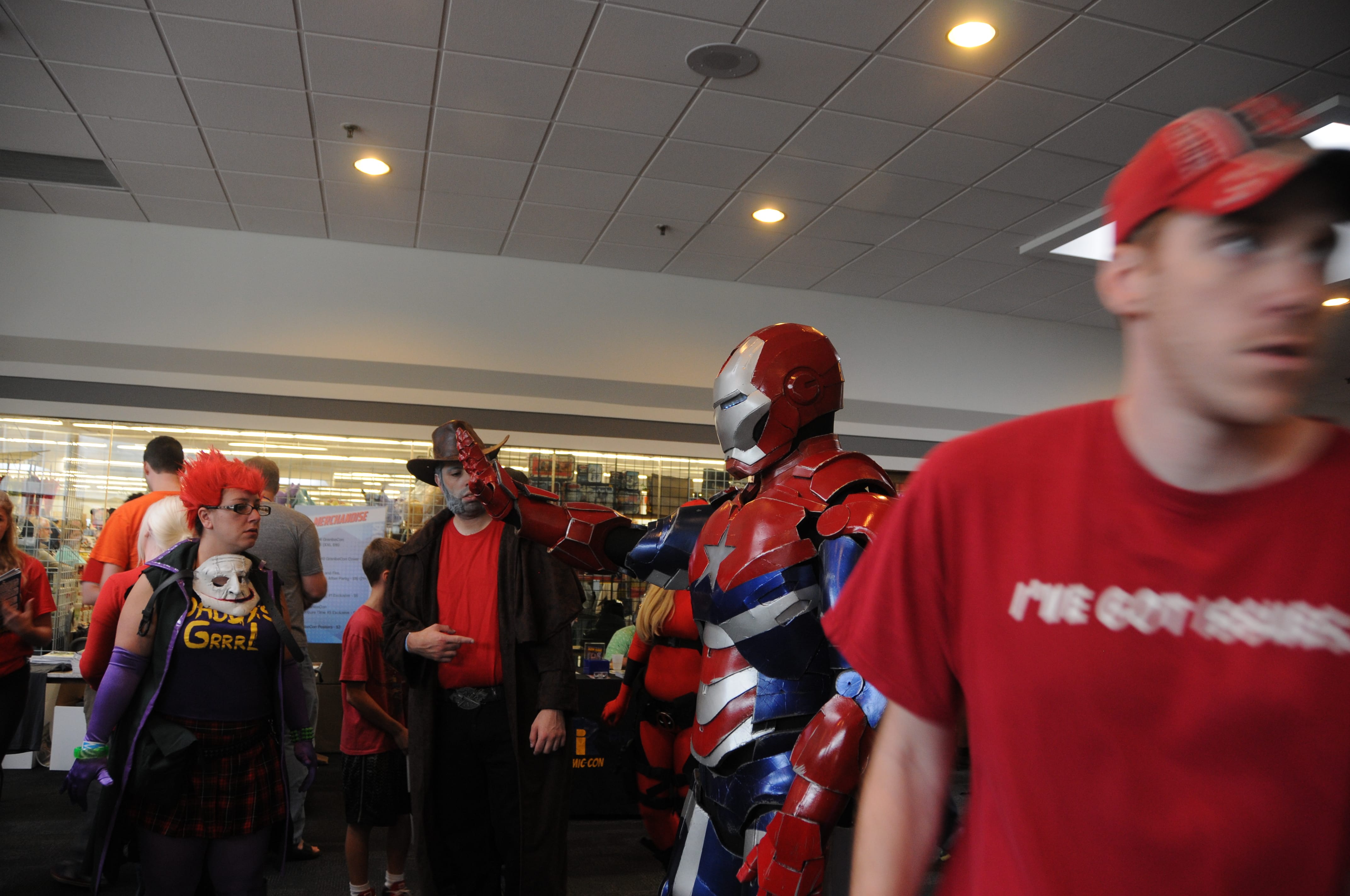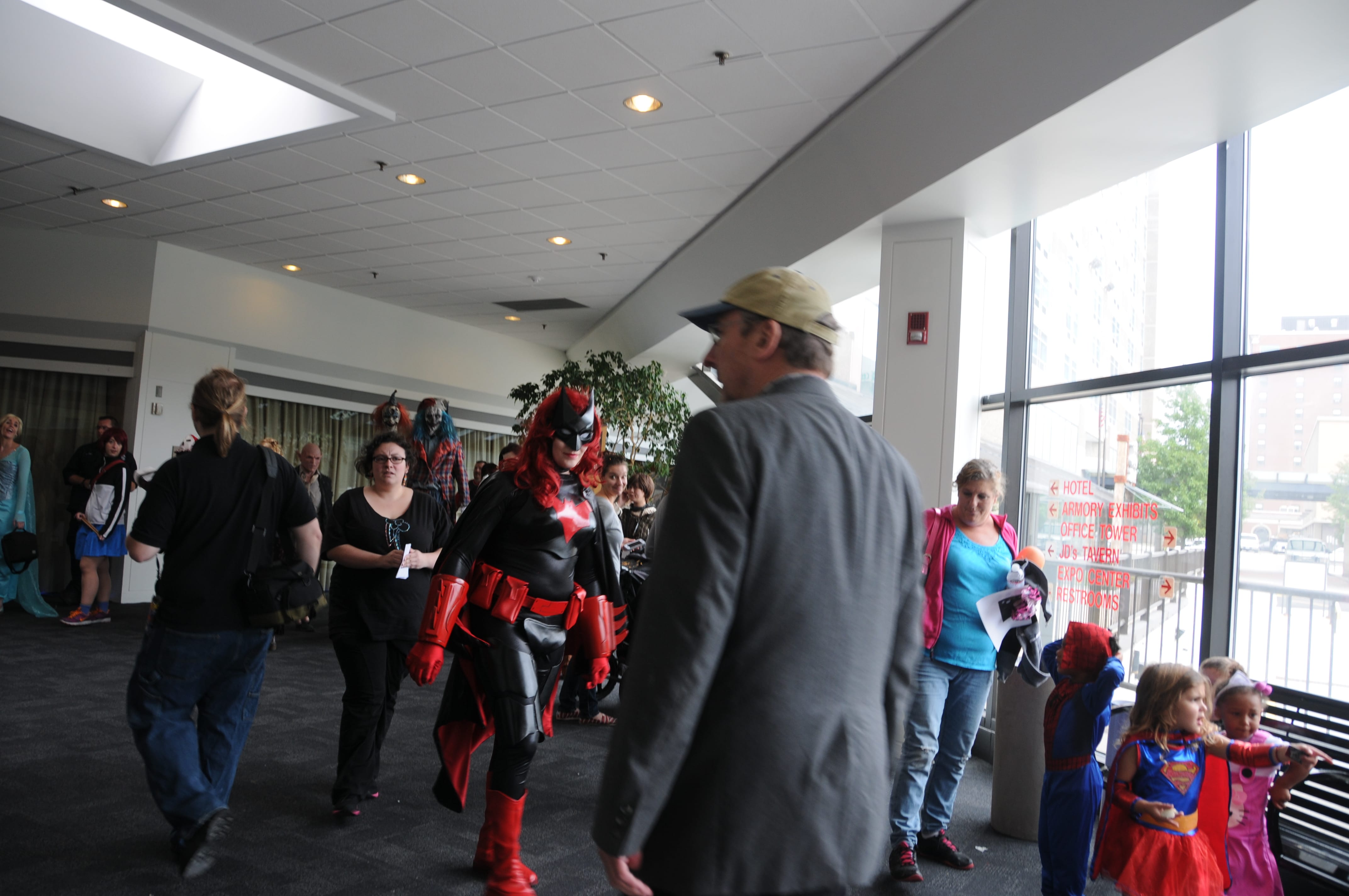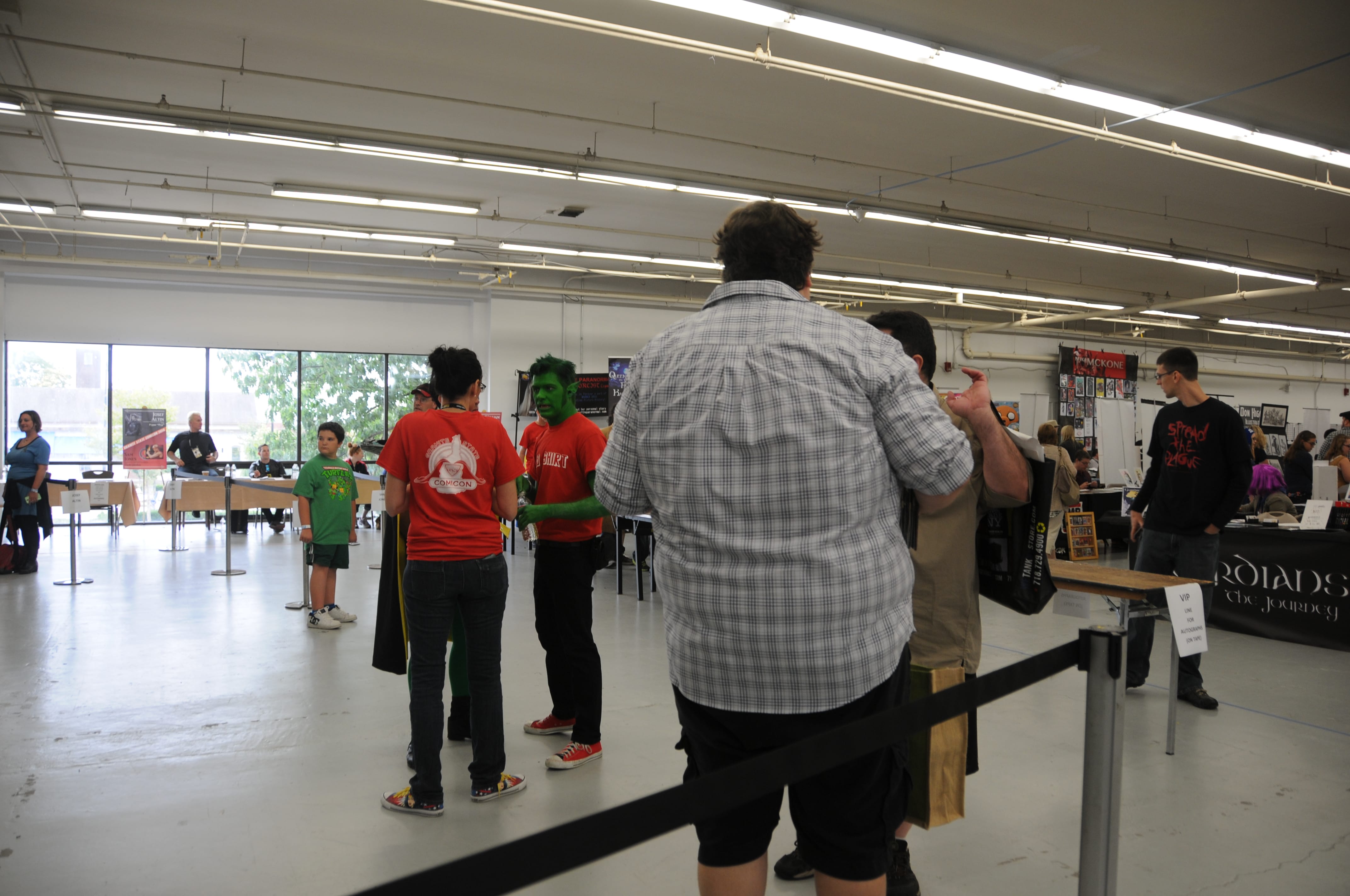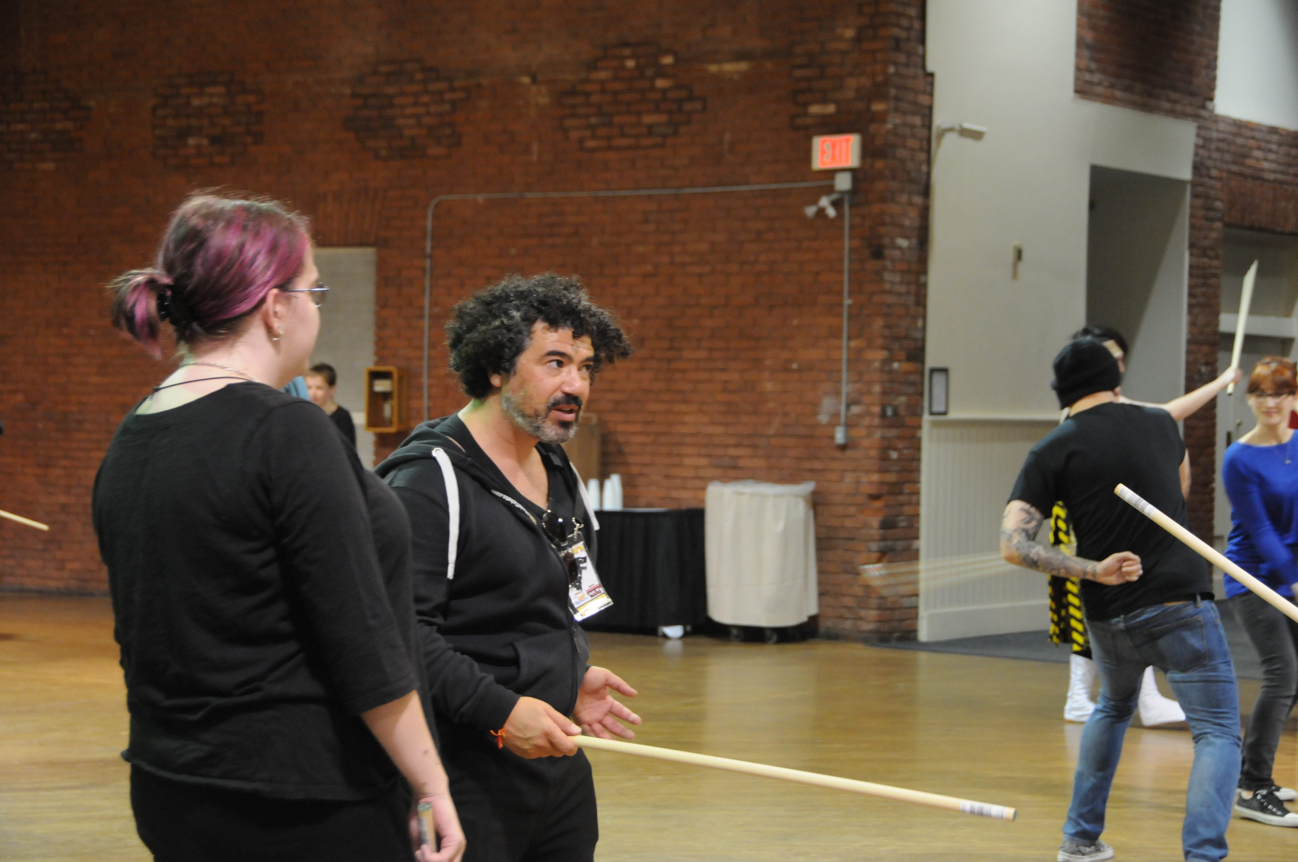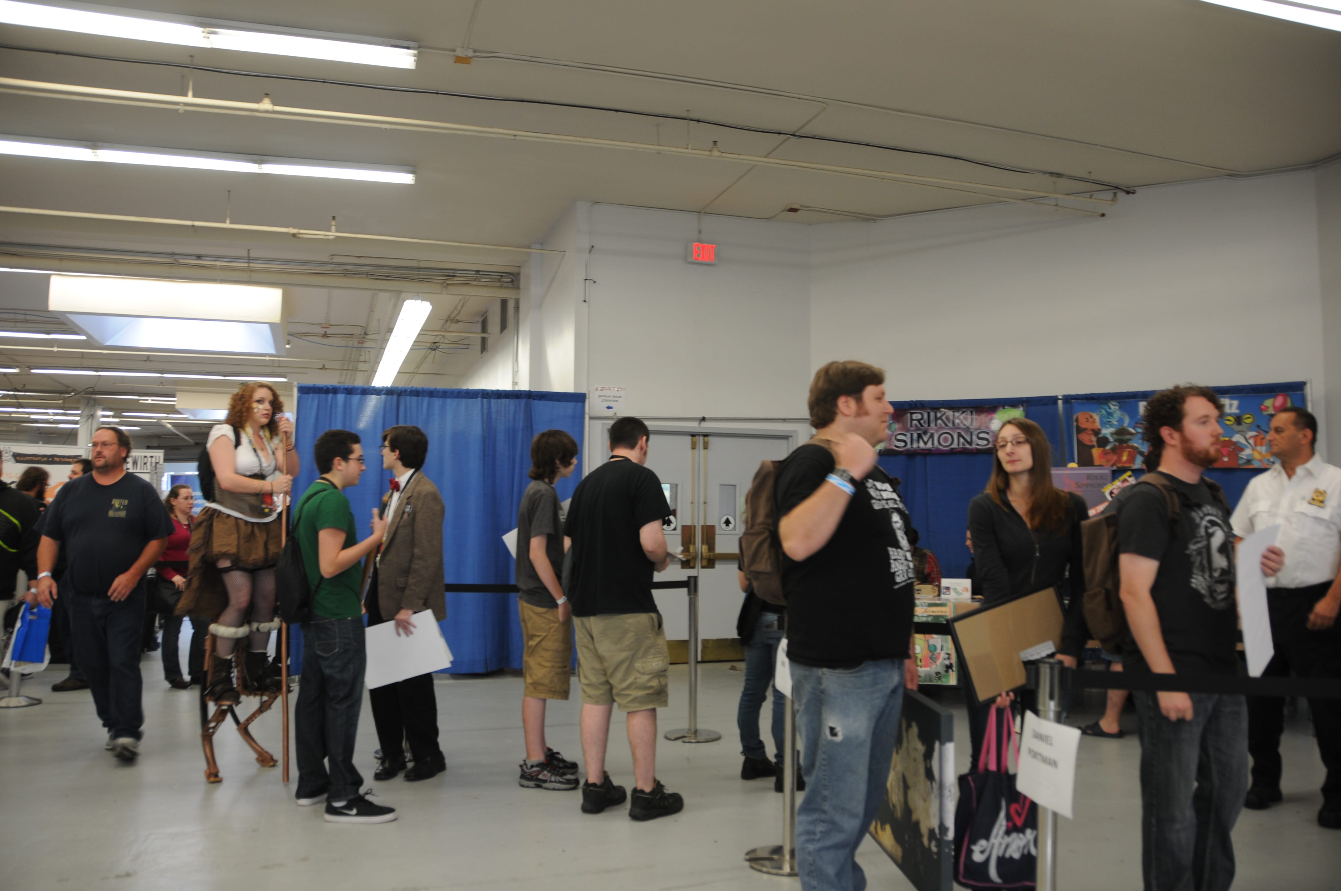 Cosplayers, zombies, Batcycles, comics, comics, comics and artists, artists, artists!…plus a hall of would-be fencers taking instruction from Miltos Yerolemou aka Syrio Forel of Game of Thrones!