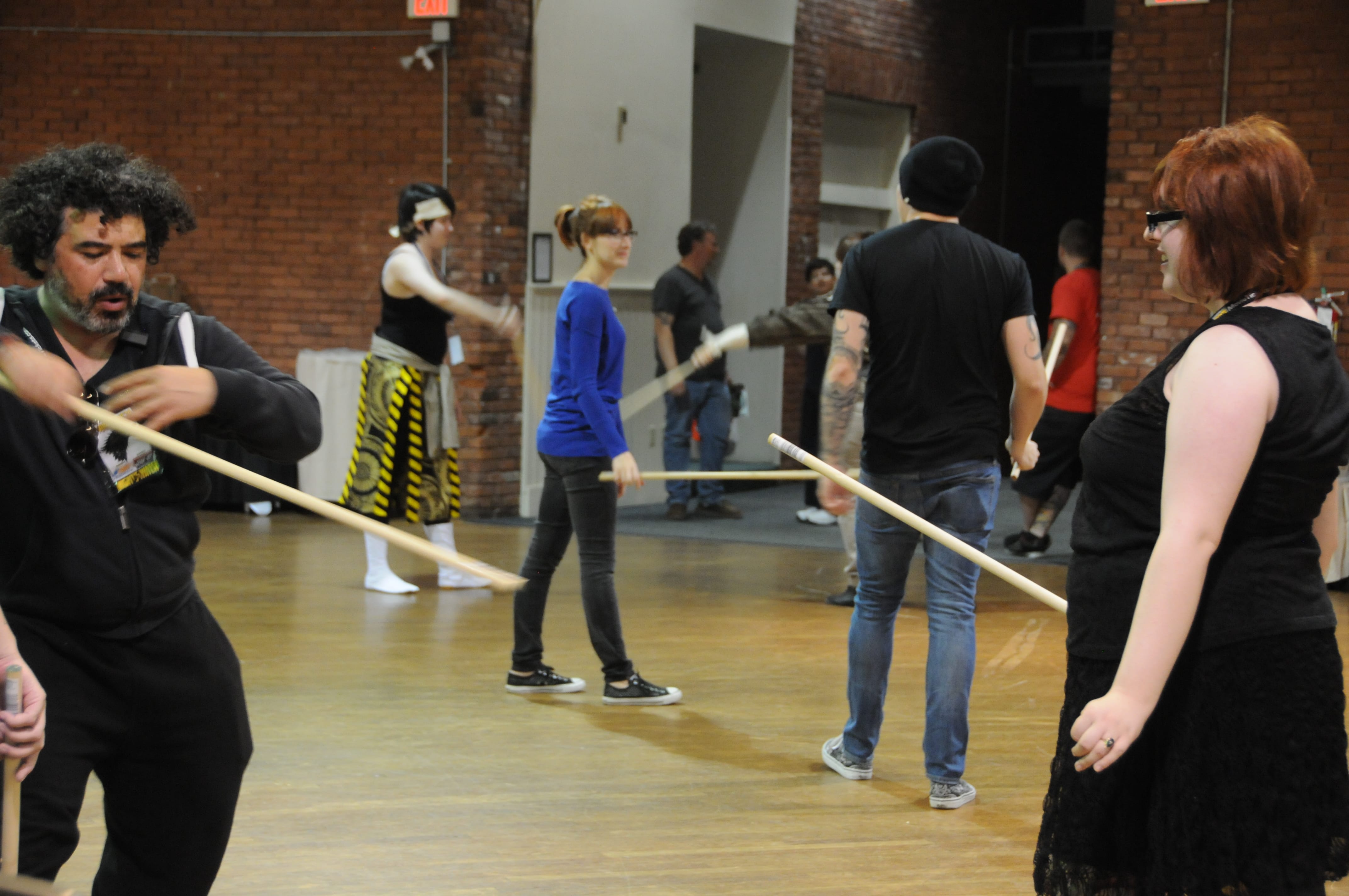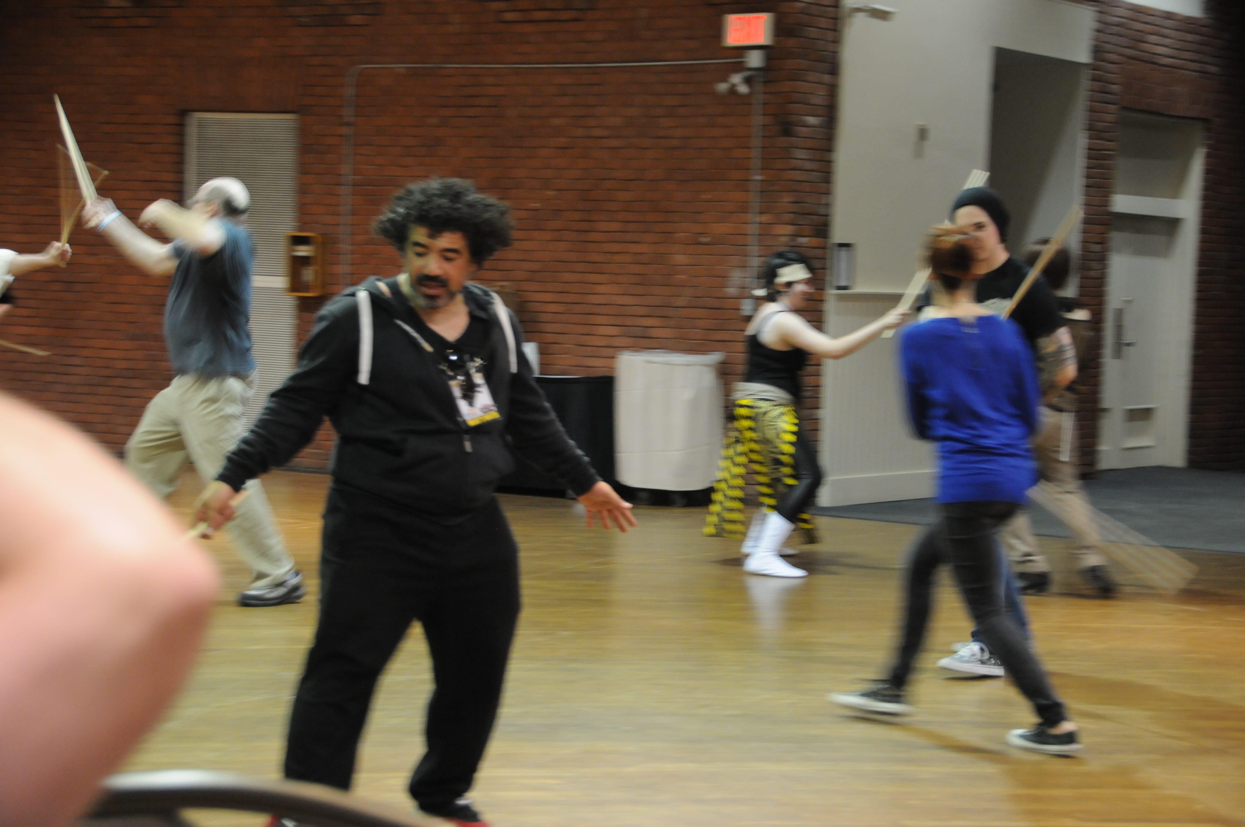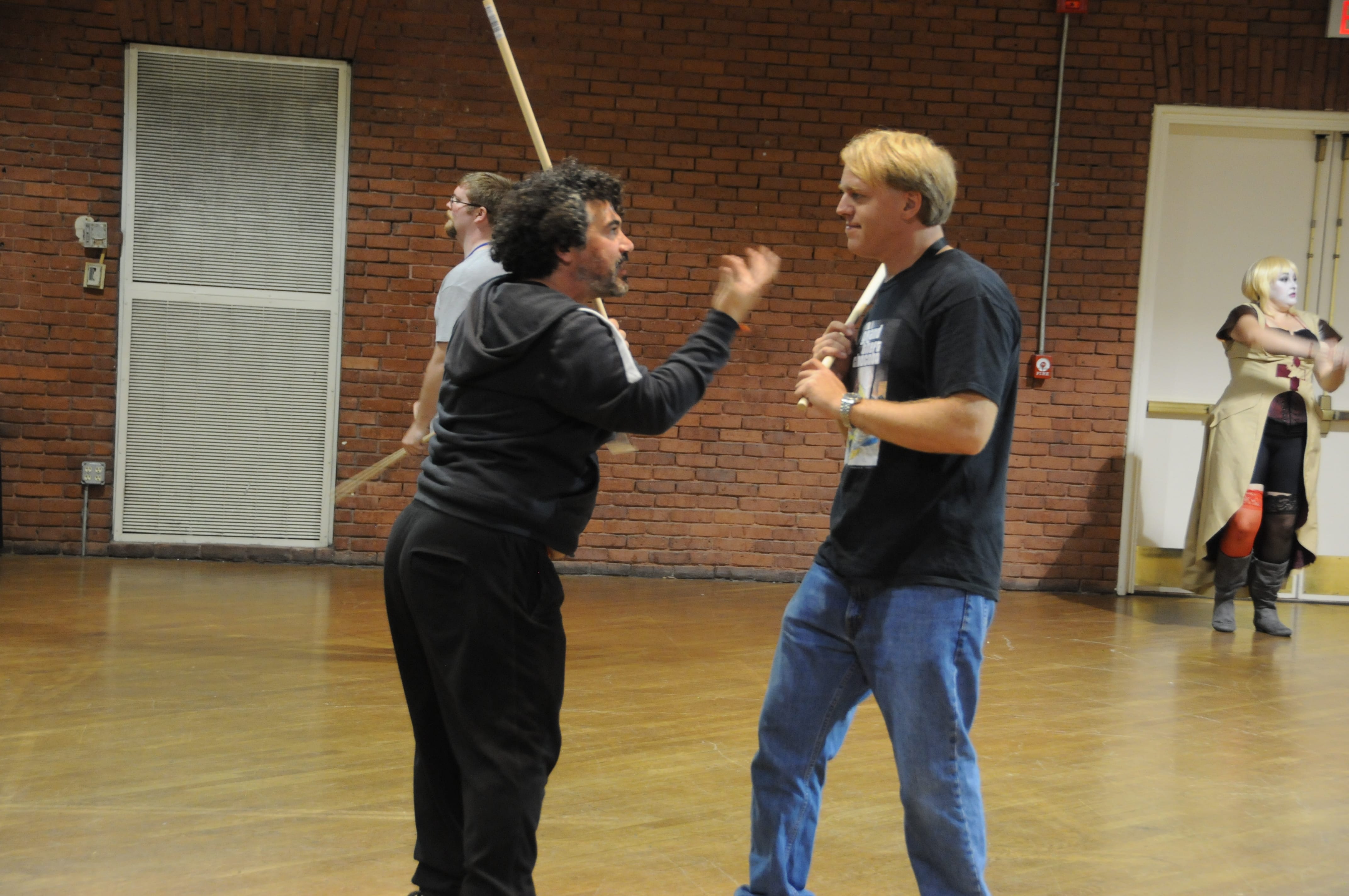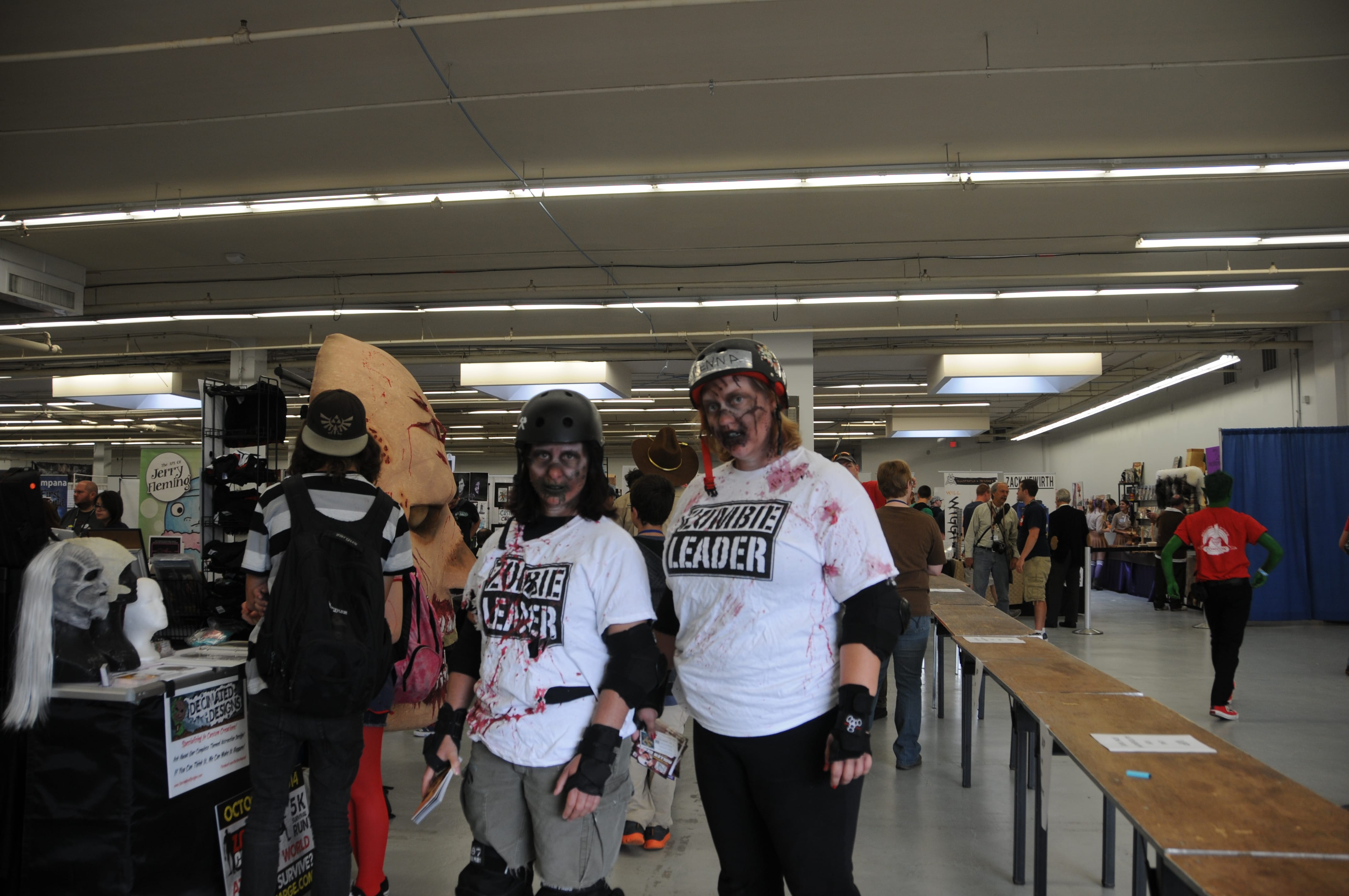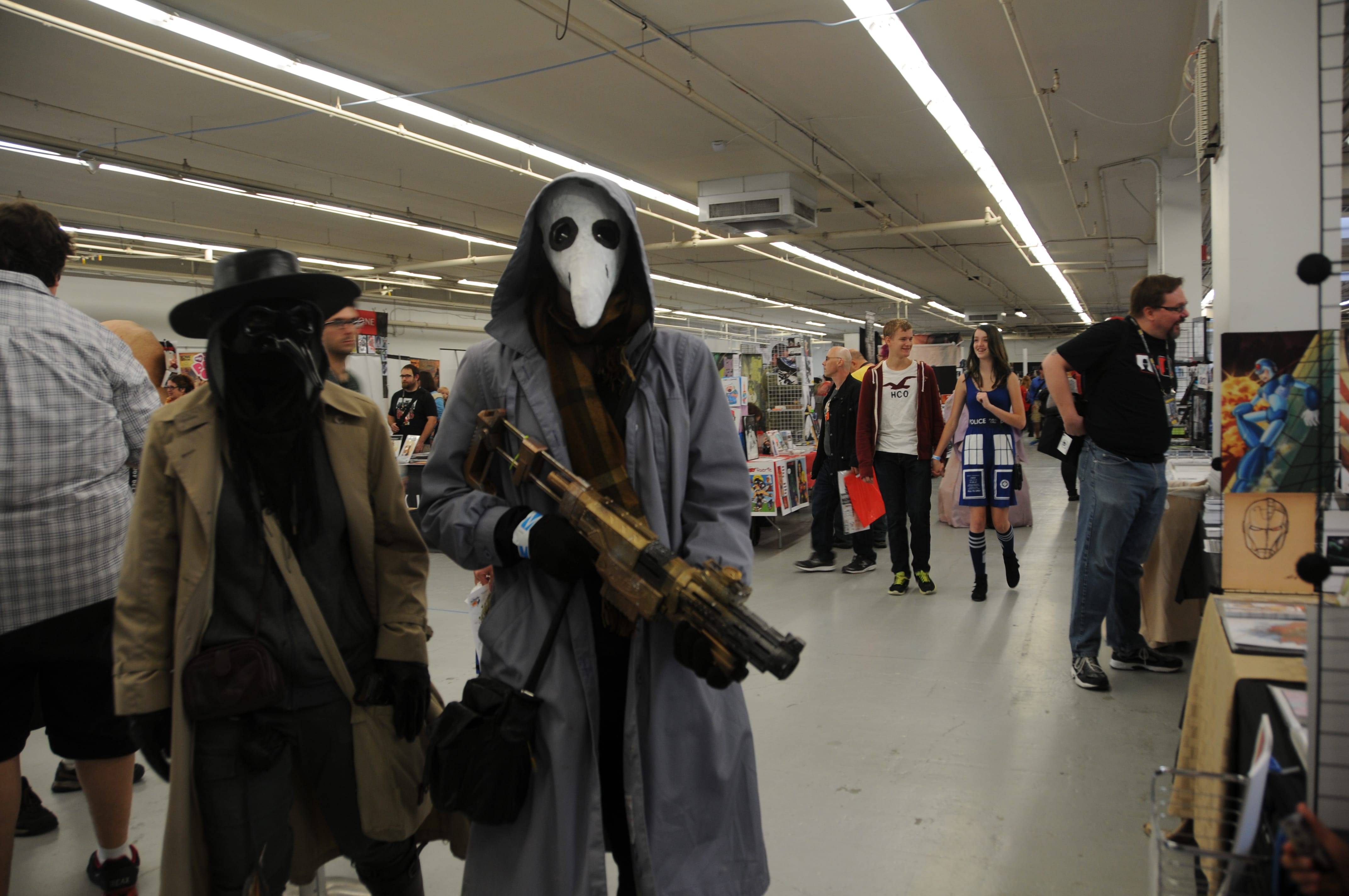 Cosplayers, zombies, Batcycles, comics, comics, comics and artists, artists, artists!…plus a hall of would-be fencers taking instruction from Miltos Yerolemou aka Syrio Forel of Game of Thrones!