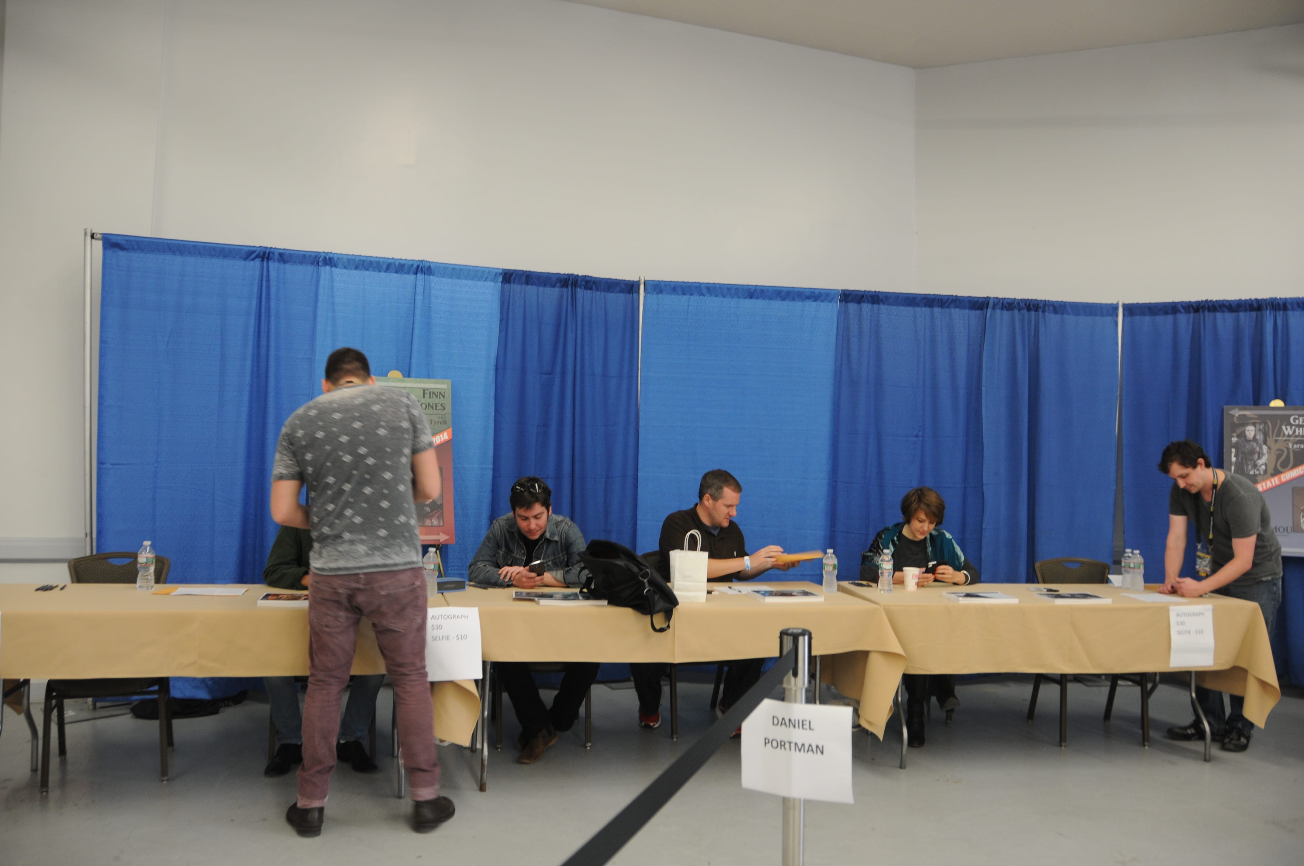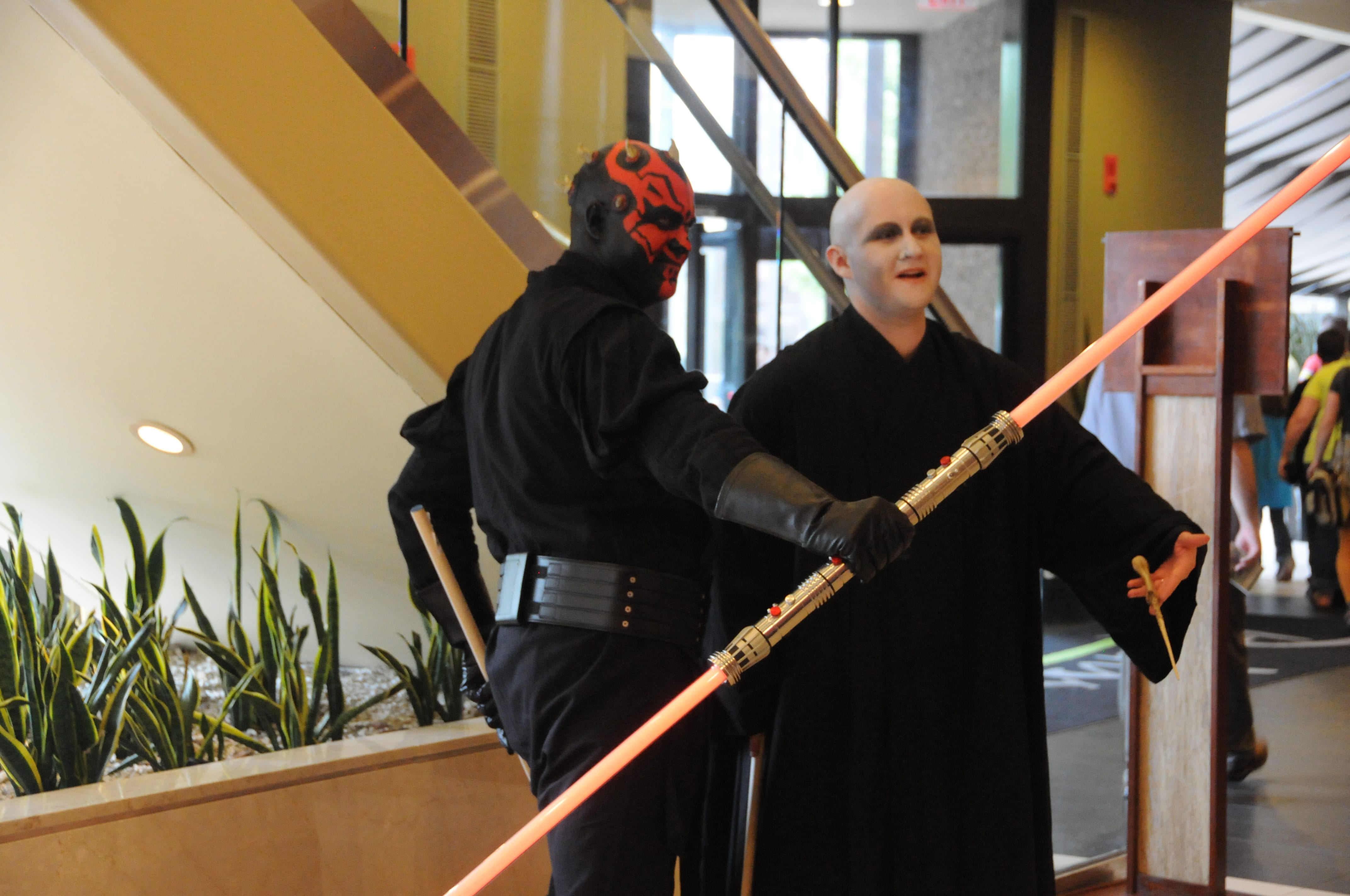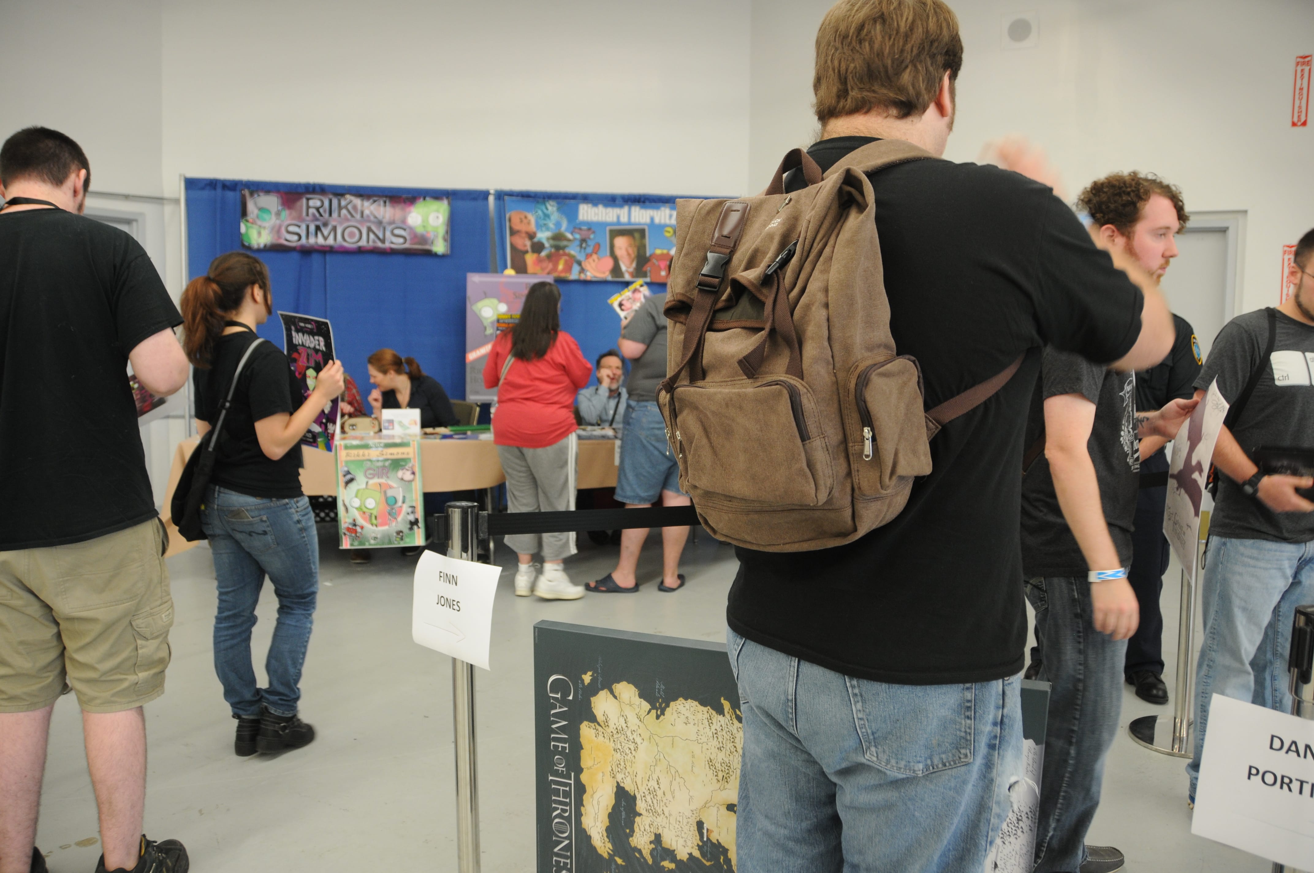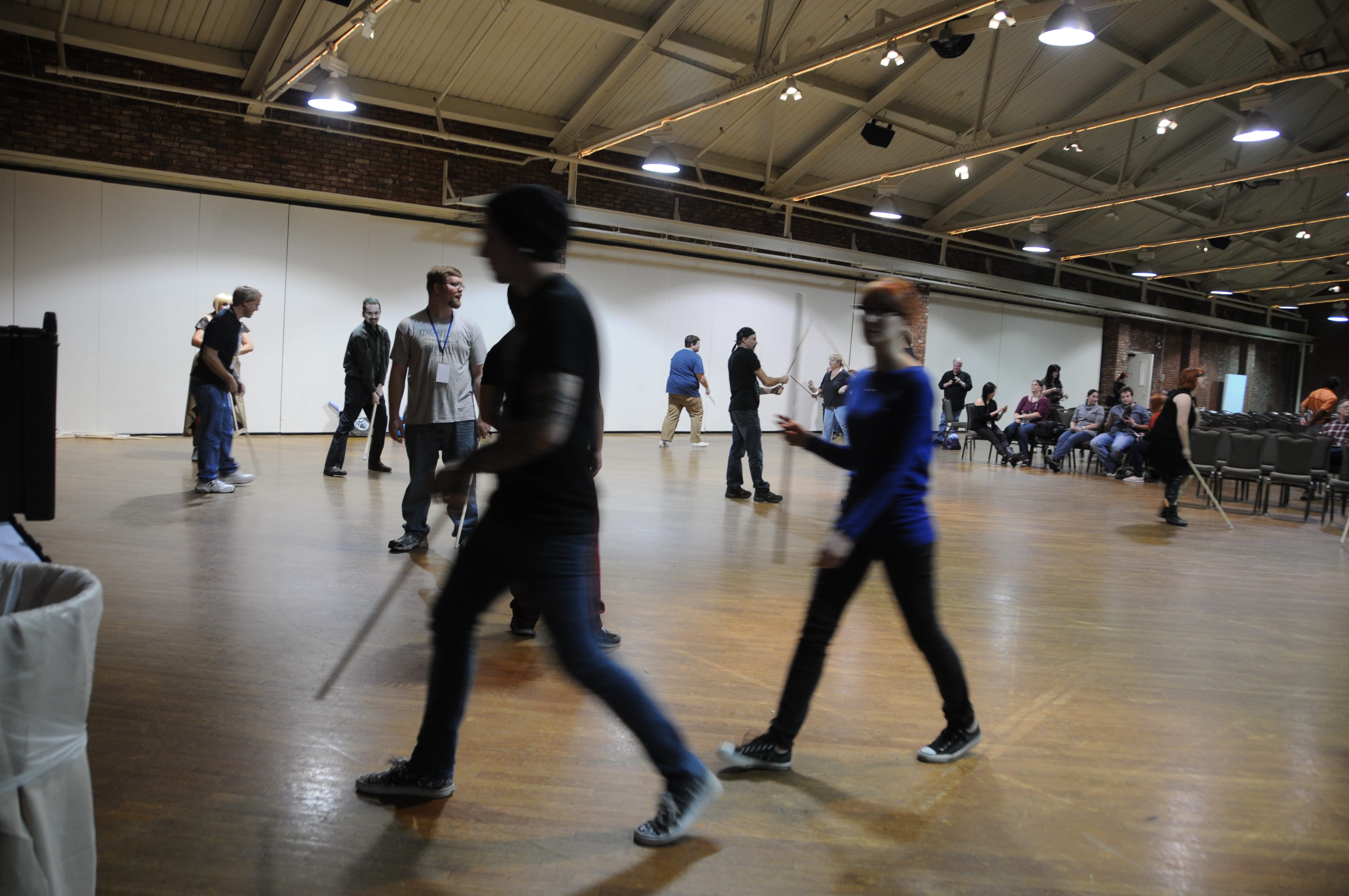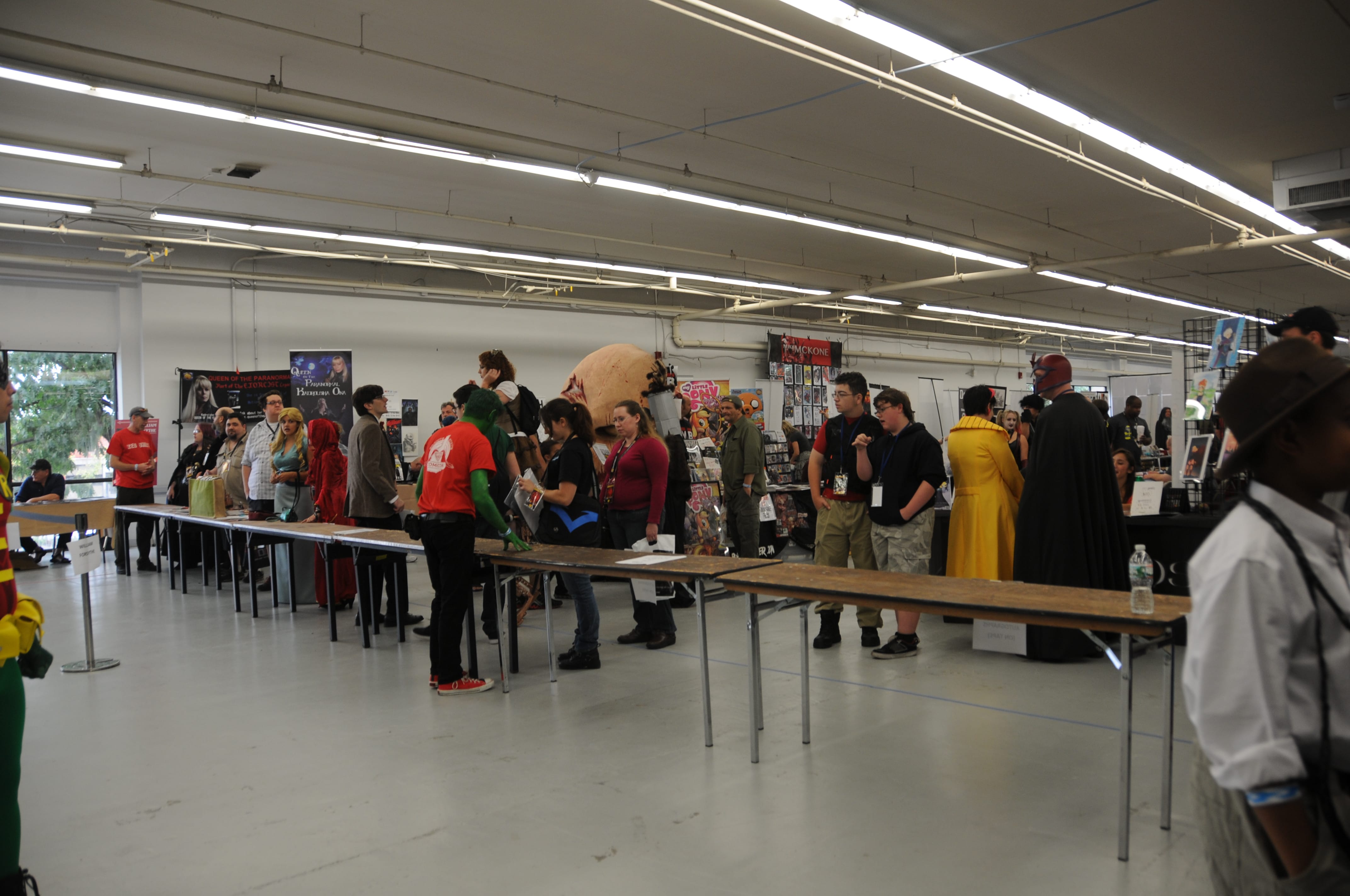 Cosplayers, zombies, Batcycles, comics, comics, comics and artists, artists, artists!…plus a hall of would-be fencers taking instruction from Miltos Yerolemou aka Syrio Forel of Game of Thrones!