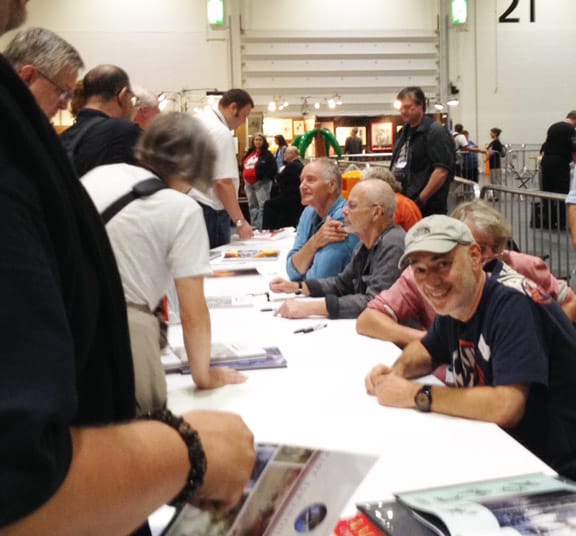 Chris Achilleos, Fred Gambino, John Harris, Ian Miller, Chris Foss. Speaking for those who showed up, I think we were kind of dismayed that Titan provided only the opportunity to buy books – but no drinks, nibbles, a ‘party’ – even for the artists signing. But we soon got over the disappointment and made it into a real party, anyway . . . when Jim Burns’ wife Sue and their children and grandchildren showed up!