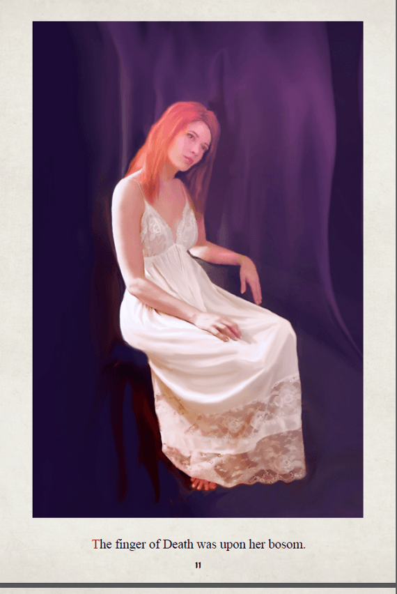 It was our original intention to publish this illustrated story by the master of suspense – Edgar Allan Poe – directly on the site. However, doing so would unfortunately not present this work in its best light. In addition to illustration and layout, Duncan prepared a special font for this presentation, one that we can not reproduce here.