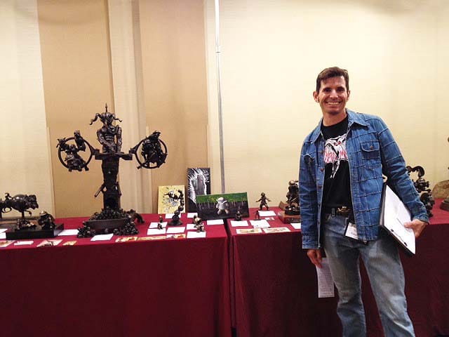 Sculptor Vincent Villafranca, in front of his display of works in bronze,  WFC 2014
