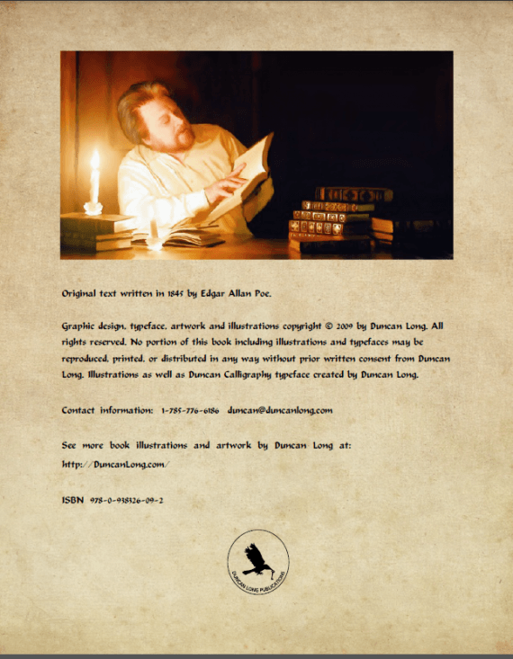 It was our original intention to publish this illustrated story by the master of suspense – Edgar Allan Poe – directly on the site. However, doing so would unfortunately not present this work in its best light. In addition to illustration and layout, Duncan prepared a special font for this presentation, one that we can not reproduce here.