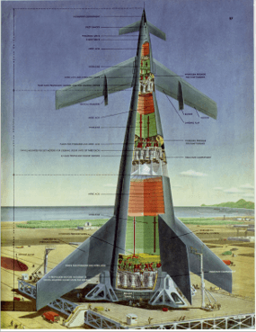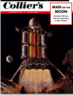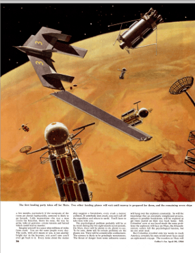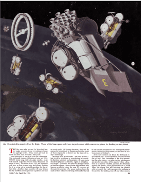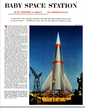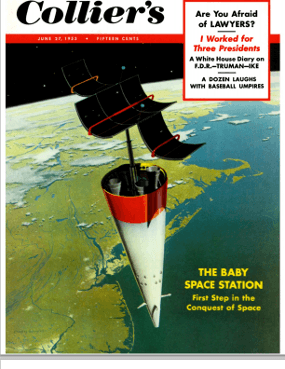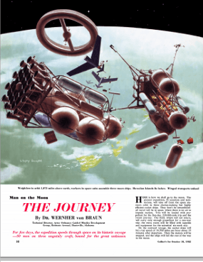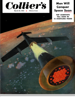 It’s difficult (and expensive) to find those original 1952 to 1954 issues of Collier’s magazine, but, as is increasingly the case these days, we can turn to the internet for a solution: the American Institute of Aeronautics and Astronautics, Houston Section has gone to the trouble of reproducing those articles within the pages of its Horizon’s newsletter.