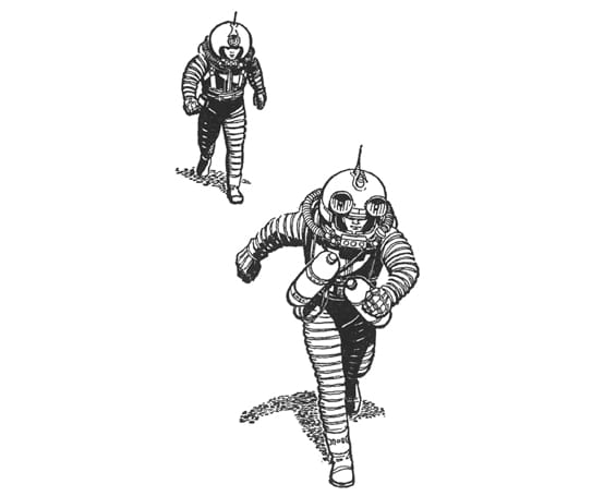 Undeterred, Kip spends his spare time and money getting the suit back into a working condition and perfectly ready for space. He soon realizes that he will need to sell the suit in order to raise money for college, so he dons the suit one last time and walks out into a nearby field. The suit’s radio picks up a strange signal and Kip replies to it. He is shocked when a flying saucer, closely pursued by a second, lands practically on top of him. A young girl (Peewee) and an alien being (the “Mother Thing”) flee from the first, but all three are quickly captured and taken to the Moon. What follows is a classic space adventure for young readers but punctuated with enough science to satisfy the most die-hard of hard science fiction readers.