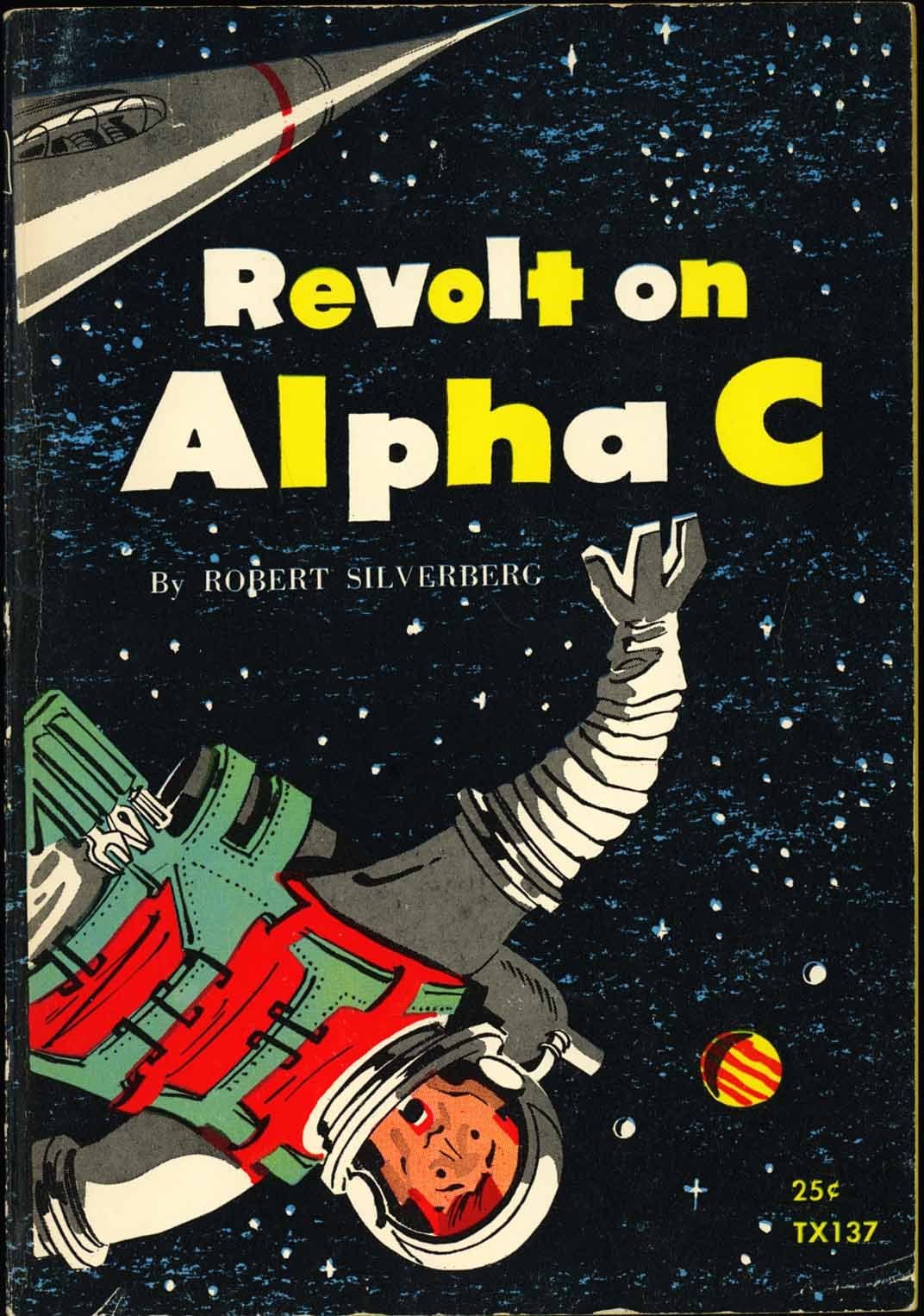 In pursuit of that, I first turned to the Scholastic Book Company, that fine publisher who during the early 60s provided my own introduction to the literary side of the field. I’ve written before about Lester Del Rey’s (actually Paul W. Fairman’s) story The Runaway Robot, and Silverberg’s Revolt on Alpha C and The Lost Race of Mars (not to mention many others).