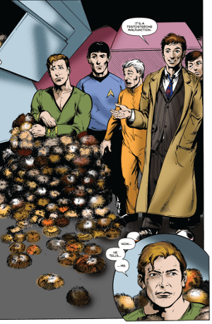 What you’ll be getting is a unique piece of science fiction, Dr. Who and Star Trek history: the idea of mashing together two of televisions most successful and popular science fiction franchises is a fan favorite – but its only been done once or twice before and never by the creator of Star Trek’s Tribbles. And speaking of Tribbles, this story contains one of only a handful of Tribble tales and it’s our guess that its the only Tribble story with Daleks!