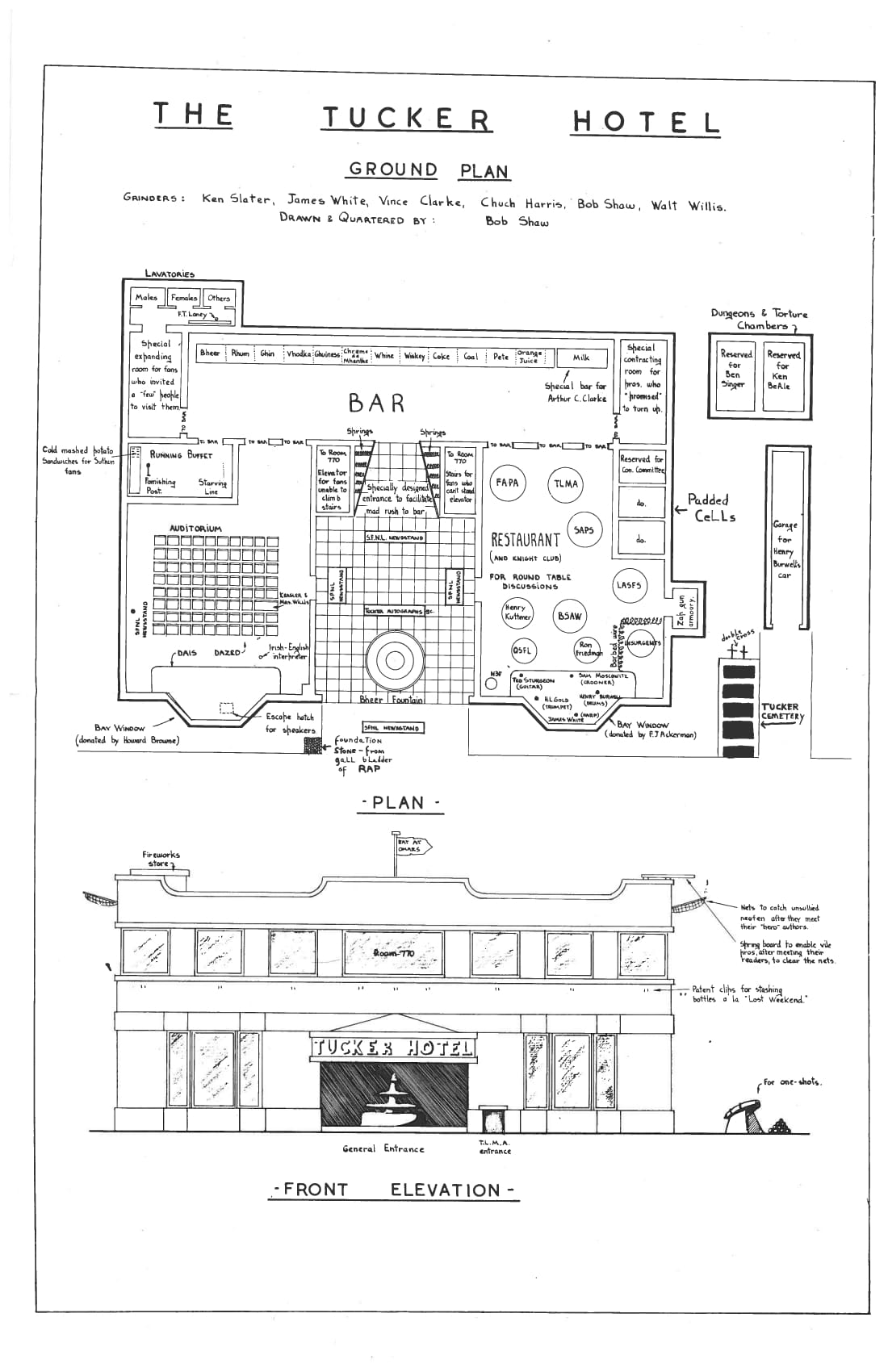Tucker Hotel Plans (Someone posted a link to a sketch of the Tucker Hotel – I think on Facebook – but I can find no credits and the link is to Dropbox, so here is the PDF reproduced in full. Original poster, please contact Amazing Stories.) Don’t know what the Tucker Hotel is/was? Then Hoy Ping Pong, Smoooooth! and Tuckerization are probably equally unfamiliar. You have a LOT of fannish catching up to do.
