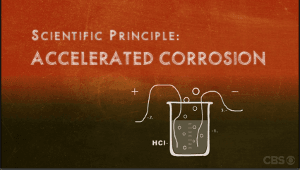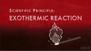 audience wonder how Sheldon knows a Queen song, he reminds them that an eidetic memory can be a curse. The second principle is “Thermal Expansion” which shows them using tortilla chips as a fuel source. Sheldon is concerned the burning food might attract animals, but Howard assures him that they have plenty of food for wild animals, notably Sheldon. They next try “Accelerated Corrosion” by burning salsa to get the acidity of the salsa to corrode the lug nut. Sheldon realizes that he may not give Howard’s MIT education enough credit, but Howard learned the trick on Mythbusters. Finally, they try an “Exothermic Reaction,” created by mixing rust from the van’s bumper with aluminum to make thermite. A few pinches have exactly the effect one would expect and the boys are standing around watching a burning van with expressions and concern, shock, and glee to see that the lug nut came off.