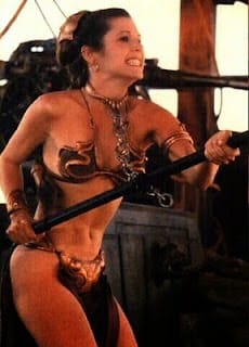 Princess Leia and that outfit: Disney can do what it wants to do with its property. That’s not in dispute. They don’t have the right to re-write history. So, in the interest of providing future generations of fans of the Star Wars saga an opportunity to see what all the fuss was about (and to see Carrie Fischer in costume presuming that such has been expunged from the film record), we offer this gallery: