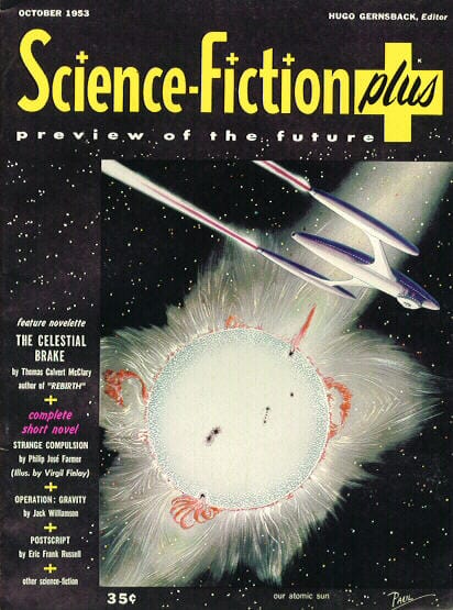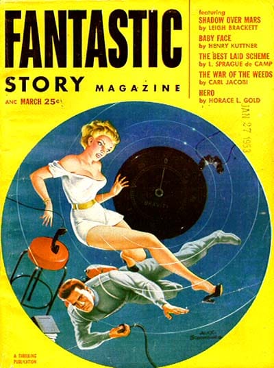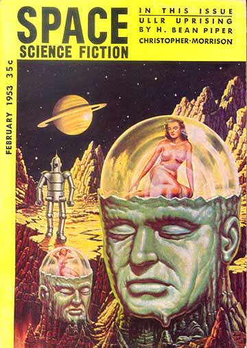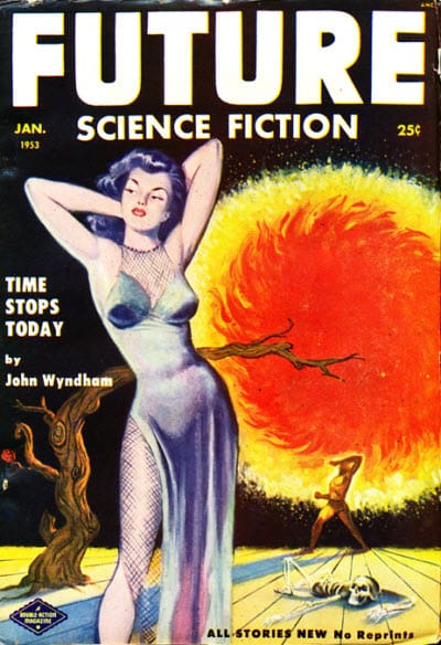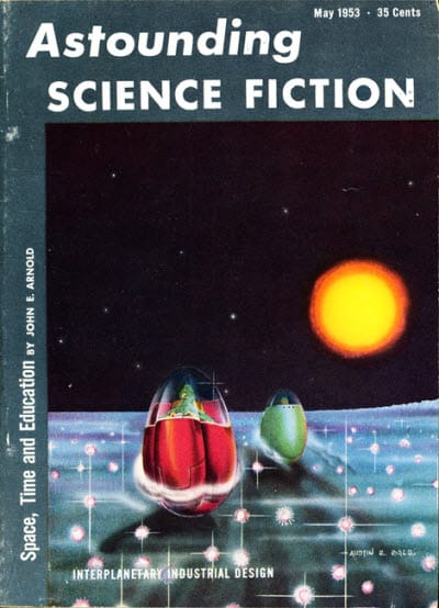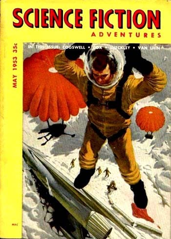 Beyond anything else, I simply can not imagine what it must have been like to be standing in front of the racks of a 1953 news shop. During they heyday of my purchasing magazines from news shops, I had Amazing, F&SF, Fantastic, Galaxy, If, Analog, Odyssey, Galileo, and a handful of reprint mags to choose from, as well as a number of “graphic” magazines like Heavy Metal and “media” magazines like Star Warp. I’d have been overwhelmed and terribly frustrated to find 38 different titles – I wouldn’t be able to choose which ones to spend my nickles on!