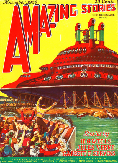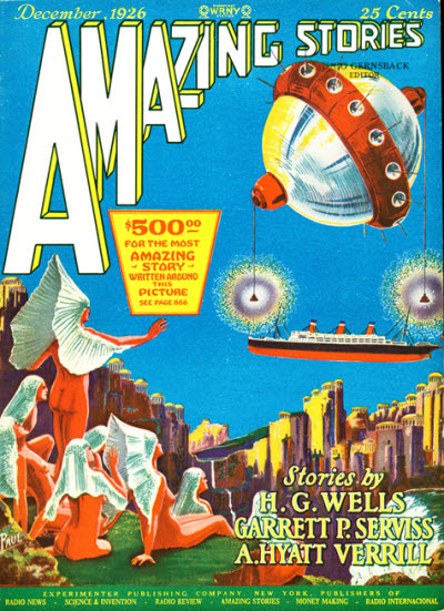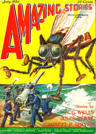 1926 was a foreshortened year for Amazing Stories, with only 9 issues publsihed (Amazing’s year began in April), and, as mentioned earlier, the vast majority of early contentt was devoted to reprinting stories by Wells, Verne and Poe, as well as reprinting material from some of his other magazines, such as Science and Invention.