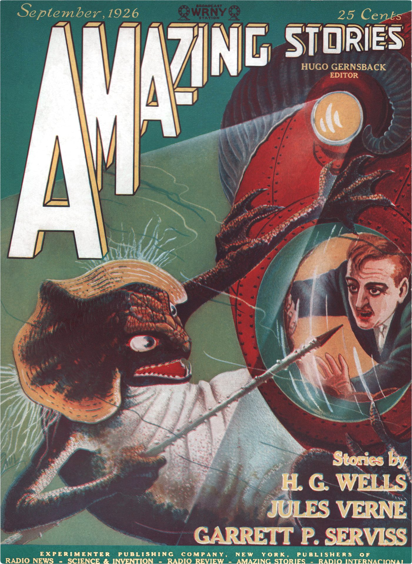 Amazing Stories honors Paul’s influence with an entire line of enhanced and re=touched high resolution scans of his covers for Amazing Stories, Amazing Stories Annual and Amazing Stories Quarterly (4/1926 – 6/1929) on posters (of various sizes suitable for framing), on clothing (T-shirts, Hoodies) and accessories such as coffee mugs and mouse pads.