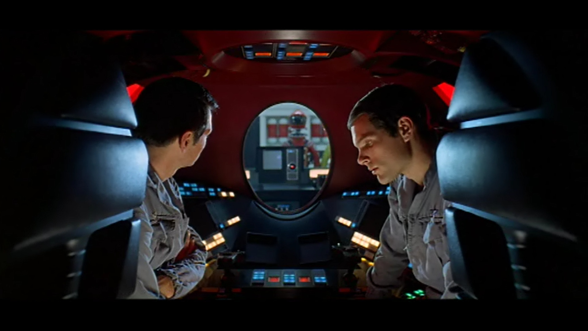 The only real color we get is during the Journey to the Infinite. Even when colorful things appear in various scenes (such as when Poole and Bowman are in various locations inside the ship), those areas of color are minimized – screens displaying colored images are viewed at odd angles. Nowhere does “color” dominate a scene.