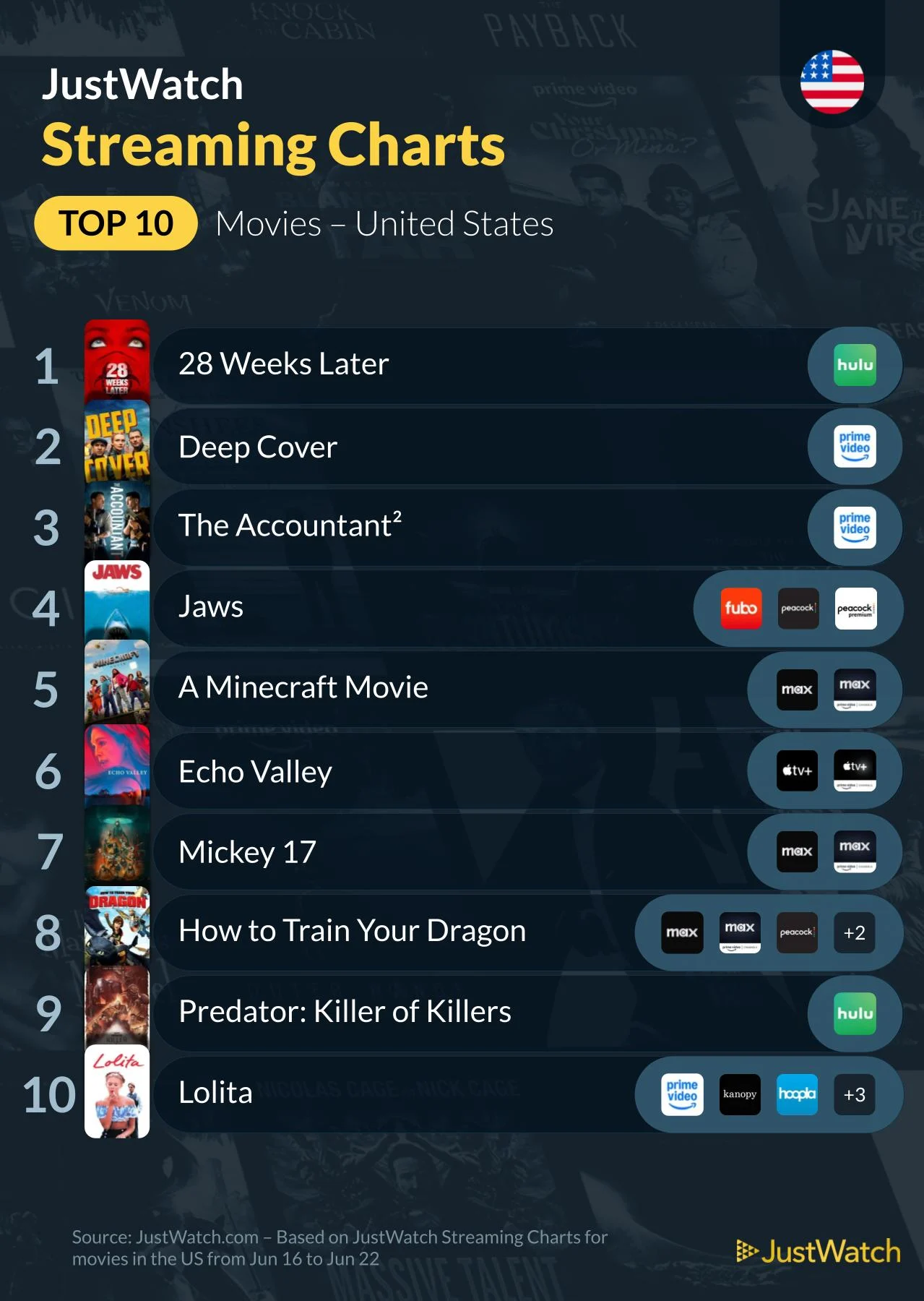 Just Watch has released its charts of the most watched streaming films and television shows for the first half of 2025!