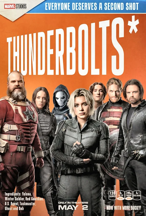 All kidding aside, I have to say that I still have a thing for the MCU, even though they’ve killed off a lot of their stalwarts or sidelined them, and moved on to the lesser elements; instead of Captain America, we have David Harbour as The Red Guardian and Sebastian Stan as Bucky…er, James Buchanan Barnes, once the Winter Soldier; instead of the Black Widow we have her “sister” of the Red Room, Florence Pugh as Yelena Belova; plus a few I’m not really familiar with, like U.S. Agent, Taskmaster, Ghost (wasn’t she in Ant Man?) and Bob. This is definitely the “B” team, right?