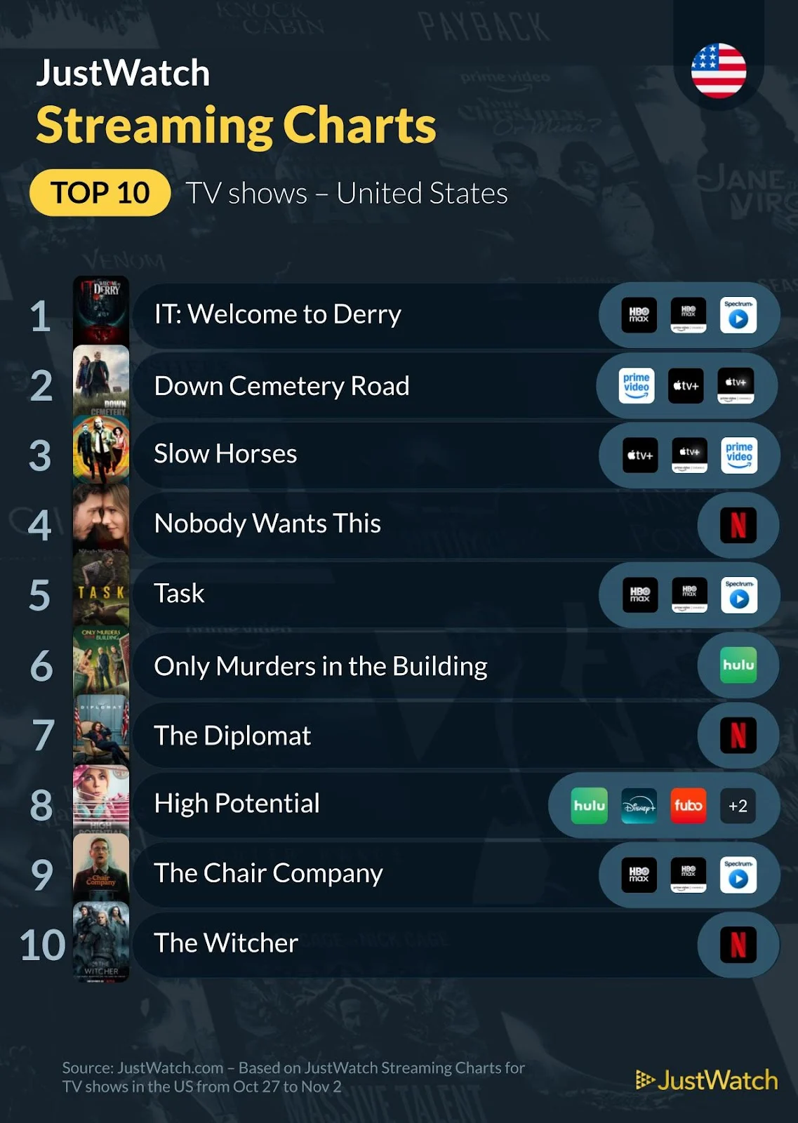 - IT: Welcome to Derry debuts strong at #1 on HBO Max.