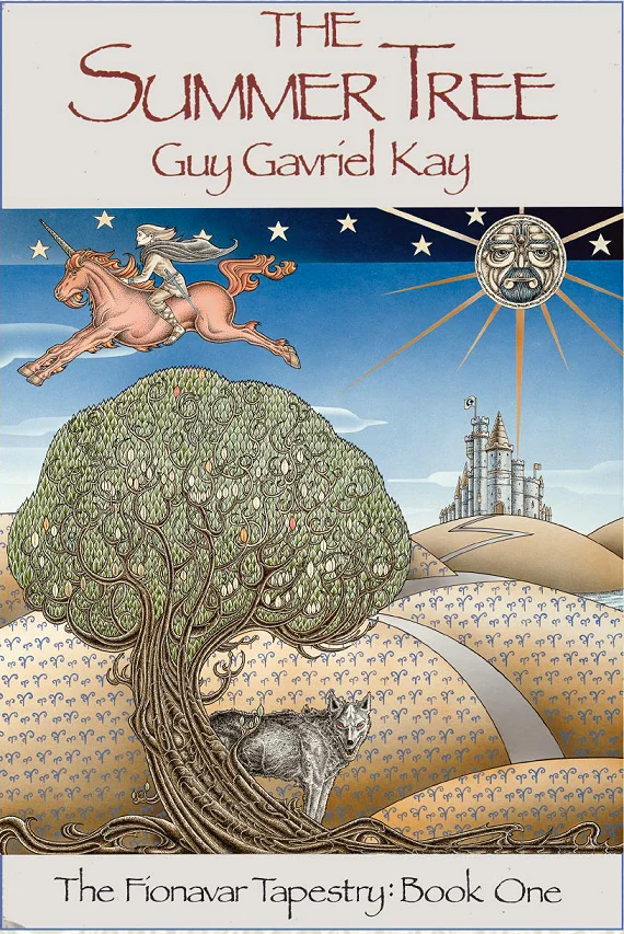 Like me, Martin was born in 1947, but where I was born in California, Martin was born in Englad. He moved/immigrated to Canada in 1965, but returned to England in 1973. He studied art at Brassey School of Art in Sussex, but mainly spent time there learning guitar, as several biographies would have it. He played with several bands in England and toured Germany and Europe, While in London (England, not Ontario), he began designing record album covers for Columbia Music while still pursuing music, and returned to Vancouver, both doing music and producing art for various books and magazines. In 1978, he moved to Toronto. In 1984, he was asked to design a book cover for a new book, The Summer Tree, by a new author named Guy Gavriel Kay (Figure 3).