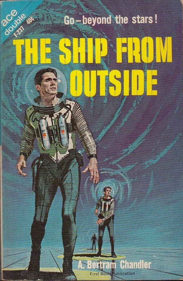 In brief, Chandler was born in 1912 in Aldershot, England, discovered science fiction through the covers and pages of Amazing Stories by 1928, went to sea that same year as a merchant seaman (working on transatlantic steam(!) ships), plied the Atlantic during WWII, visiting John W. Campbell’s Astounding Stories offices when in port in New York City, was encouraged to write his own stories, sold his first one (This Means War! Astounding Stories, May, 1944) and then, in 1956, emigrated to Australia, where he continued his career at sea, all the while either thinking about or composing some 200+ short stories, 40 novels, numerous poems, squibs and shaggy dog stories, writing until his passing in 1984.