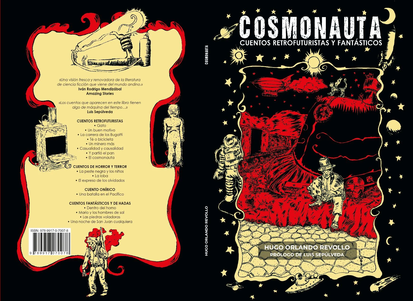 La segunda edición del Cosmonauta. Al tratarse de un libro capricho de autor, uno de esos donde reúno algunos de mis gustos personales en cuanto a los géneros, me había planteado la idea de no sacar una nueva edición. Pero varios de mis lectores, los de nicho, me fueron pidiendo el libro. El año pasado saqué una pequeña edición artesanal que voló en Tarija. Sumado a que algunos de mis personajes se volvieron queridos para varios de mis lectores, concretamente el gnomo Leonel y el gato autómata… Al ser un cuentista, no busco que mis personajes trasciendan; me importa más la historia y la artesanía de la maquinaria del cuento. Pero estos dos, sobre todo el gnomo, calaron entre mis lectores. Estas cosas me animaron a sacar esta nueva edición.