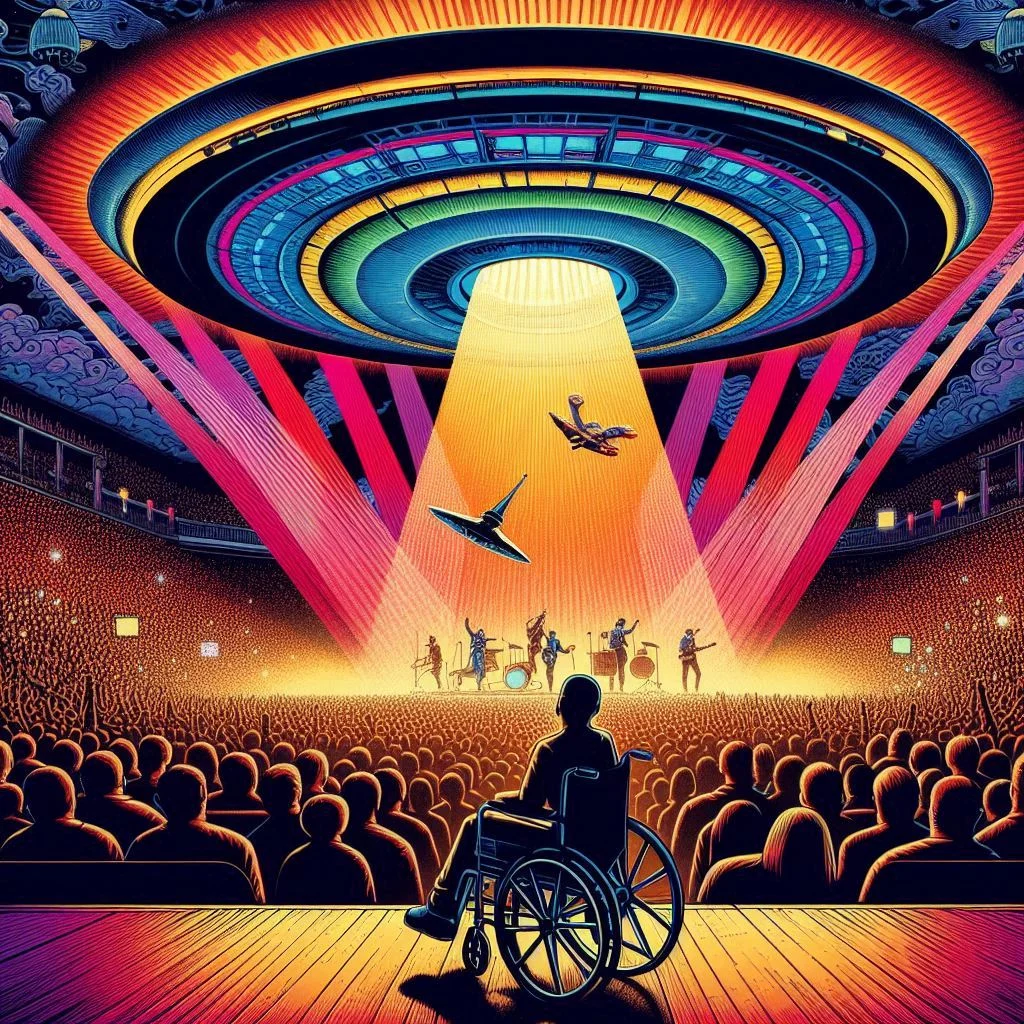 He whipped his head around, and saw the opening was closing. Meanwhile, he was being gently lowered to the floor of the cave, which was smooth. He touched down with barely a wobble, but his wheelchair kept moving, as if an invisible being was smoothly pushing him along. He tried to grab the wheel handles and stop the forward movement, but whatever was pushing him was stronger than he was.