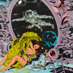 What’s not to like? You got your alien monster, your alien ruins, your sophisticated space science gizmos, your overall 1950s retro look and art style. Perfect. Exactly what I want in SF comic art, or “graphic art” as they say nowadays.